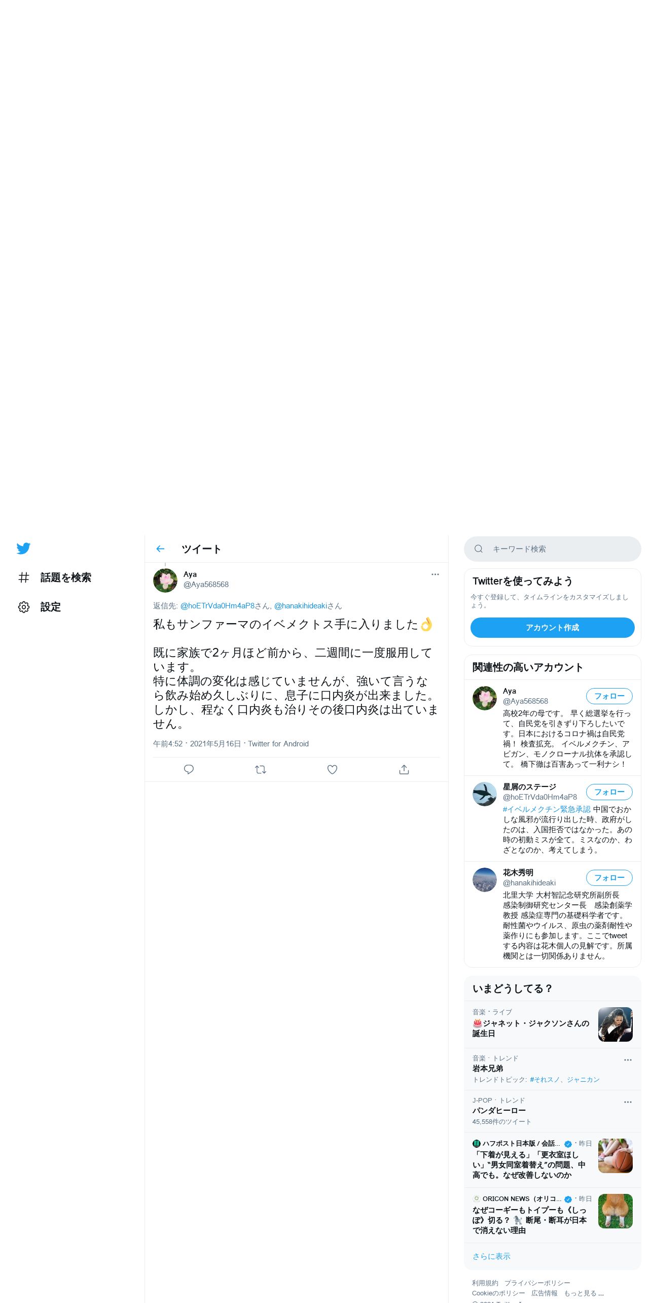 取得元URL: https://twitter.com:443/Aya568568/status/1393791491512750081