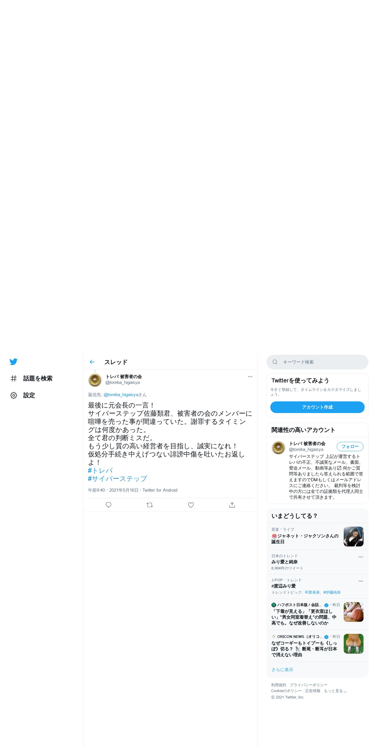 https://twitter.com:443/toreba_higaisya/status/1393863800592297990