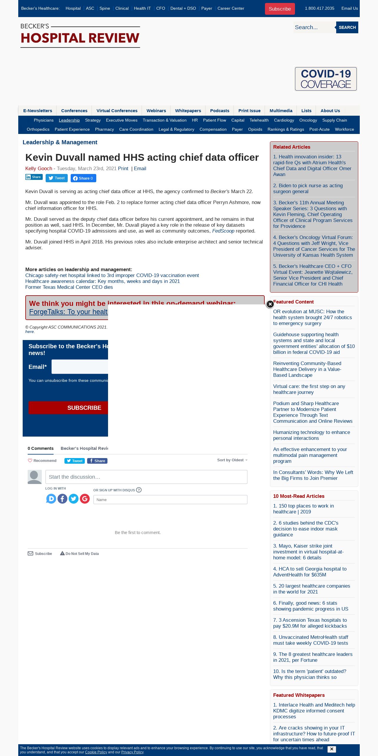 https://www.beckershospitalreview.com:443/hospital-management-administration/kevin-duvall-named-hhs-acting-chief-data-officer.html