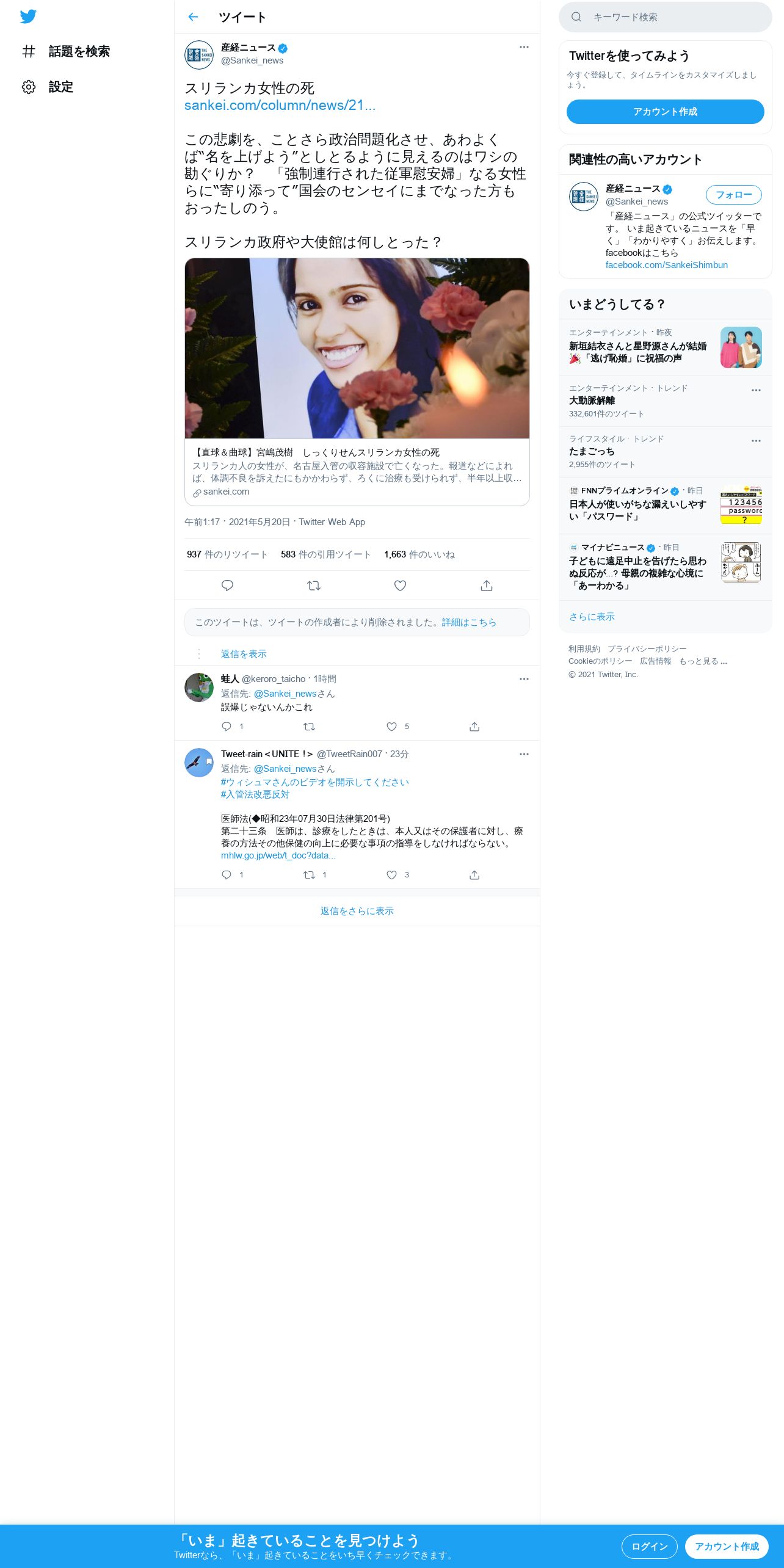 https://twitter.com:443/Sankei_news/status/1395187000064364544
