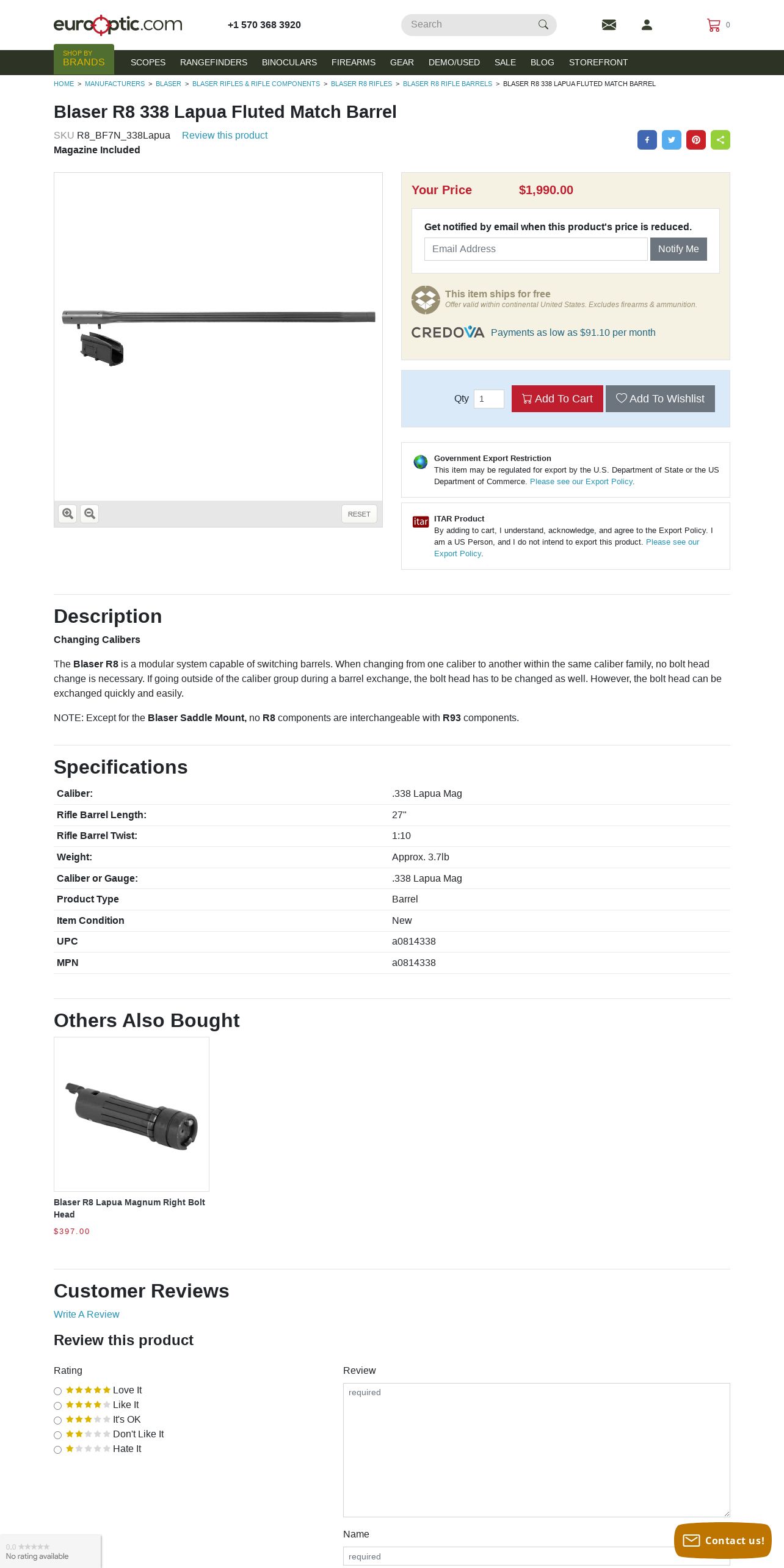 https://www.eurooptic.com:443/blaser-r8-fluted-match-barrel-338-lapua-with-magazine-and-dual-brake.aspx