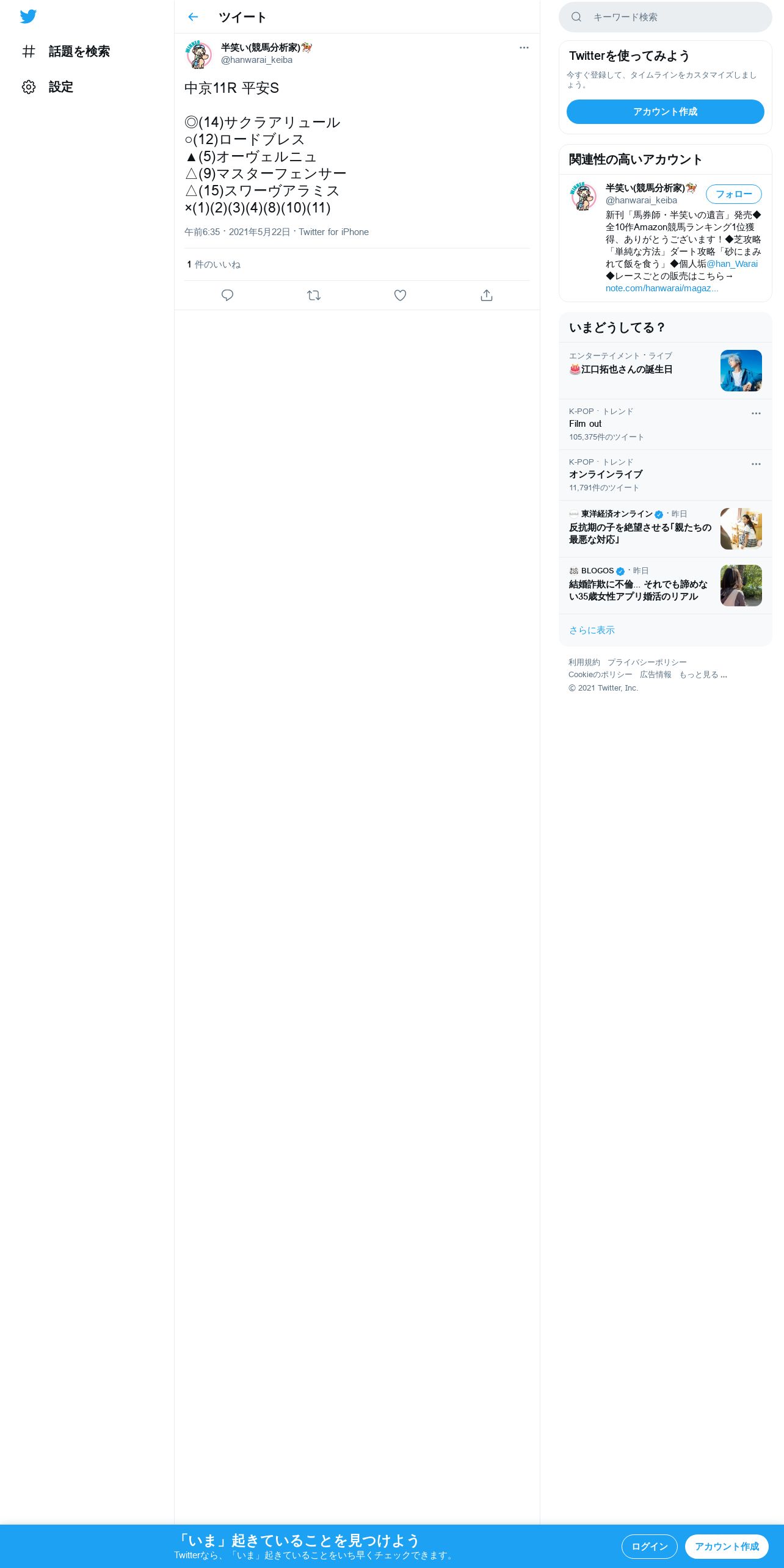 https://twitter.com:443/hanwarai_keiba/status/1395991736049049600