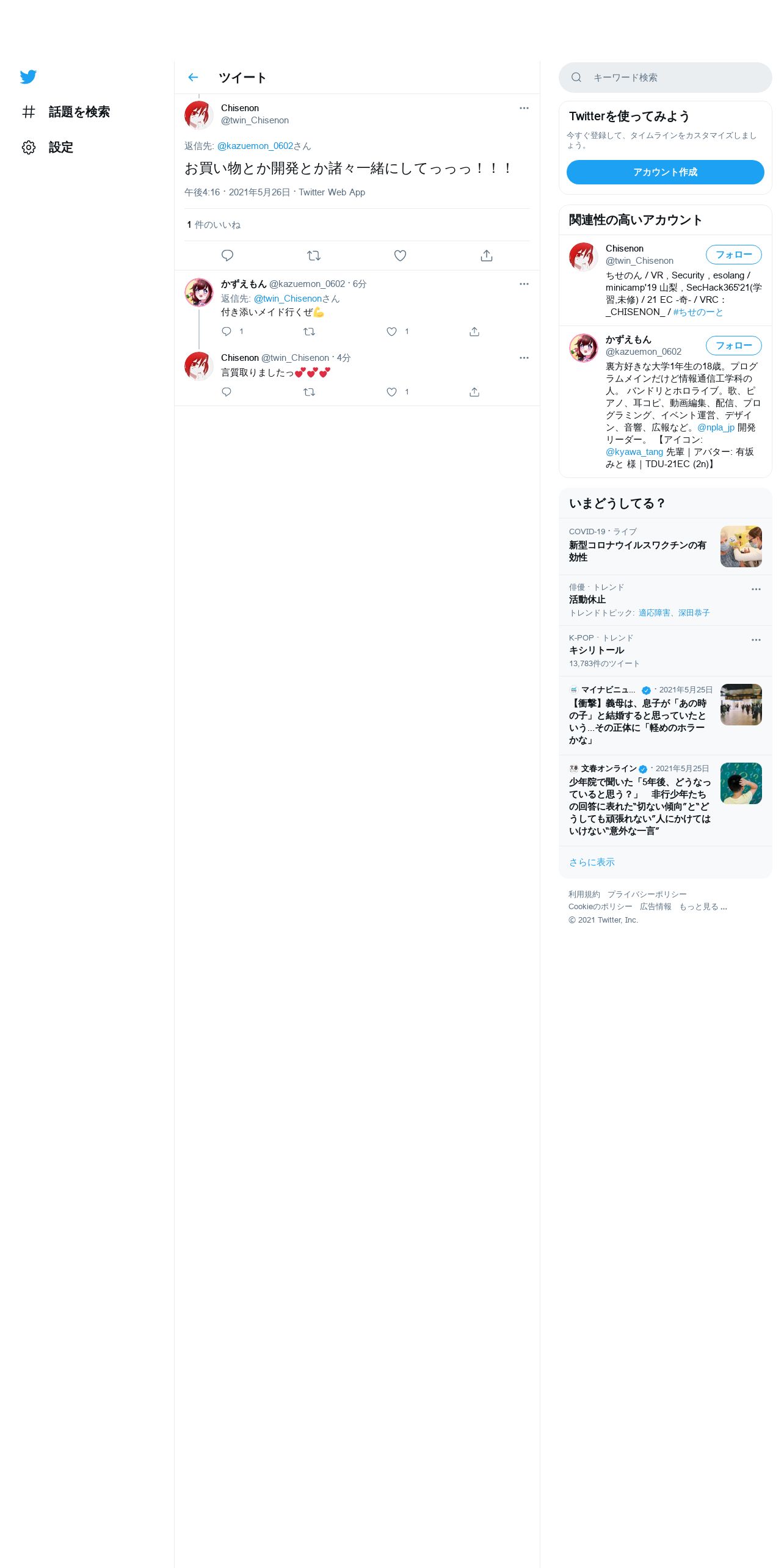 取得元URL: https://twitter.com:443/twin_Chisenon/status/1397587374062784513