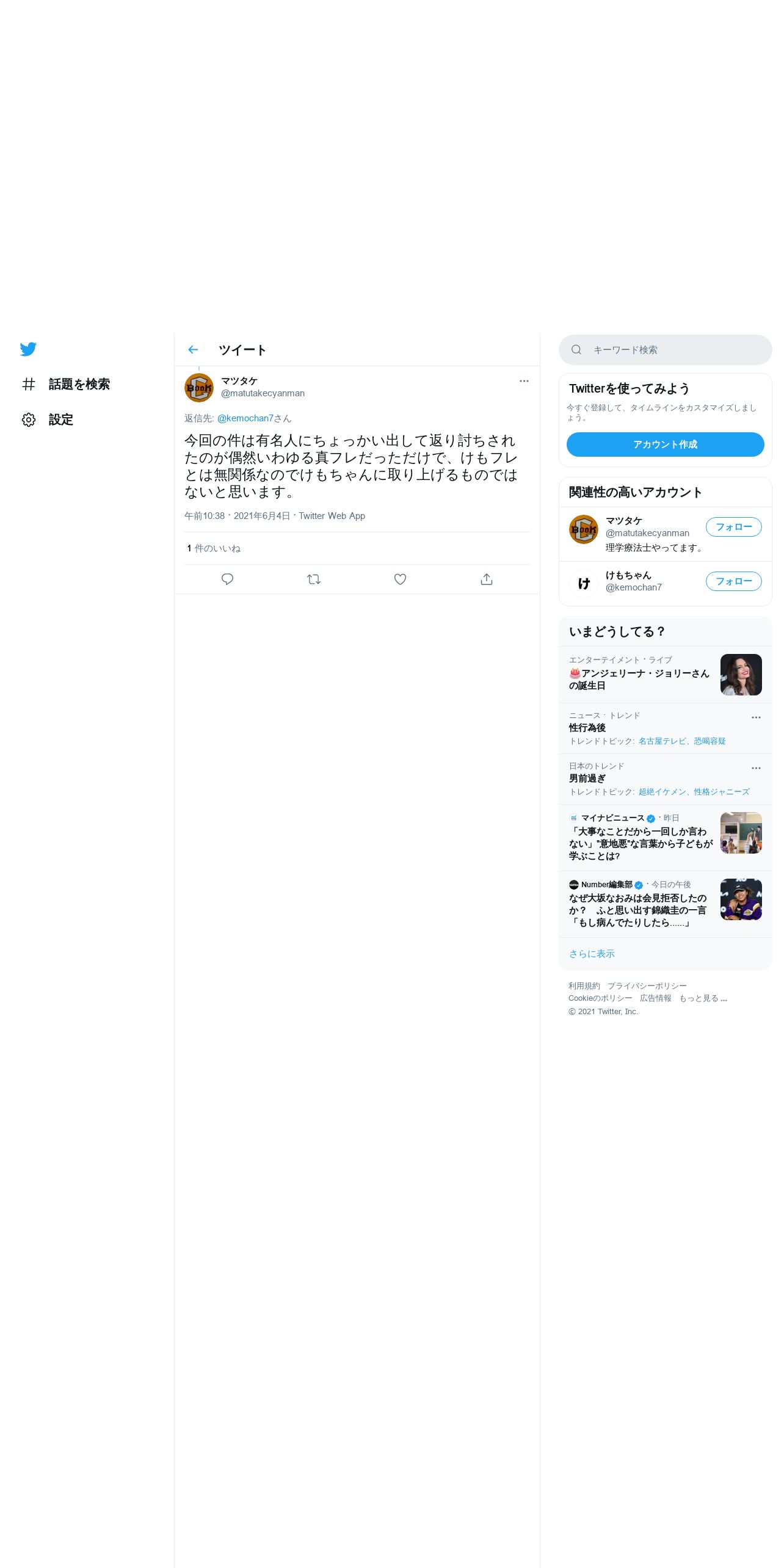 取得元URL: https://twitter.com:443/matutakecyanman/status/1400763881367080960