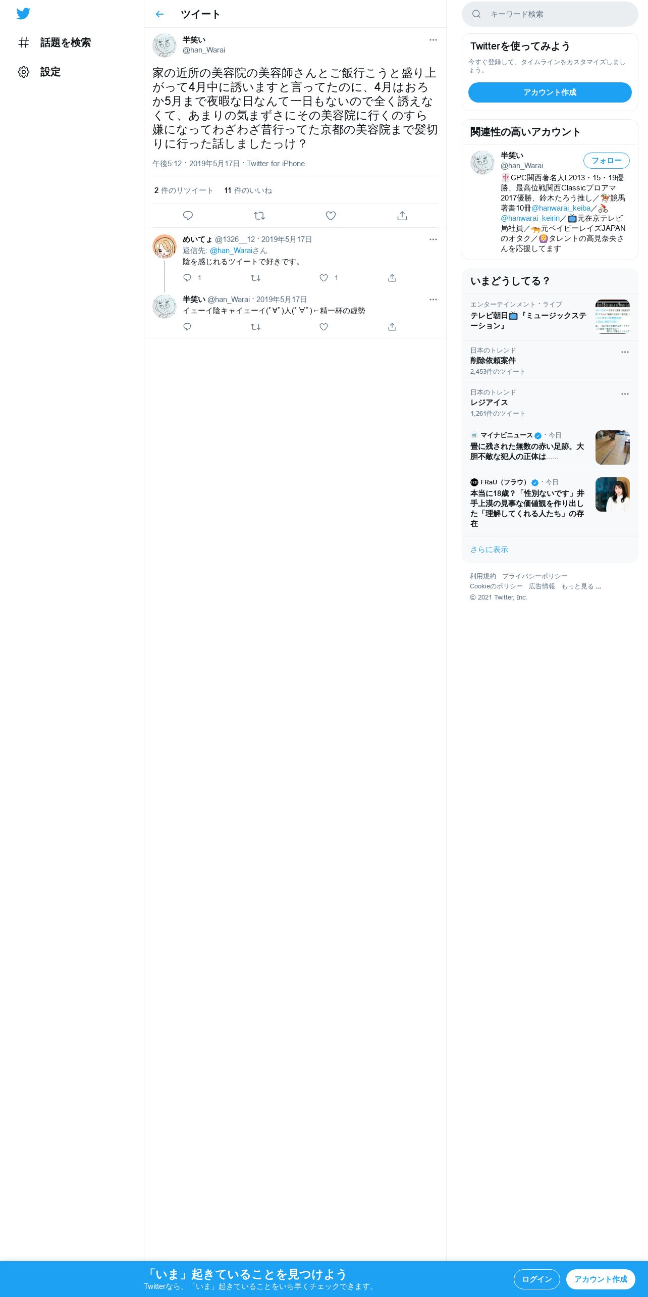取得元URL: https://twitter.com:443/han_Warai/status/1129434598352379904