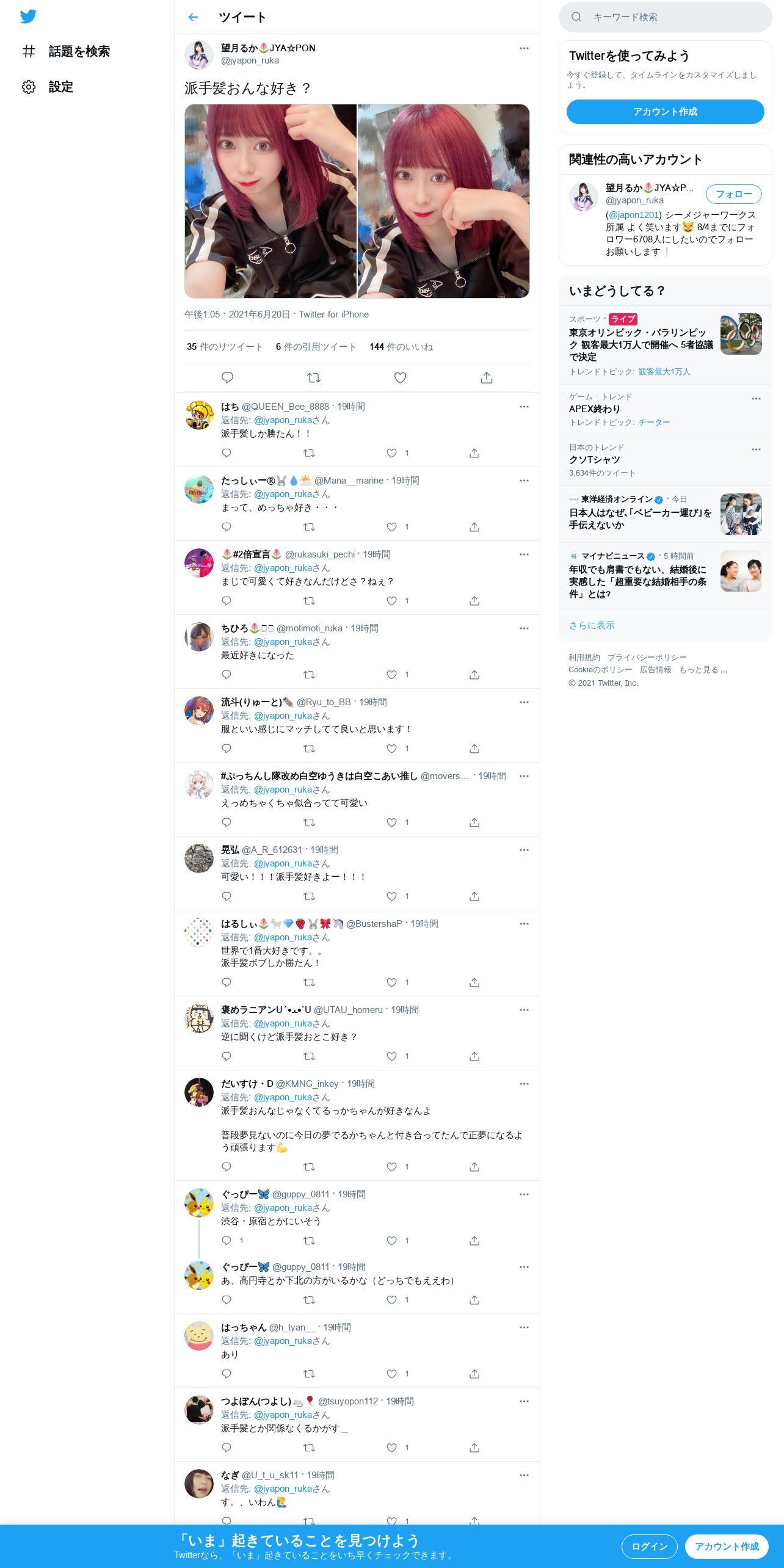 取得元URL: https://twitter.com:443/jyapon_ruka/status/1406598963239669766