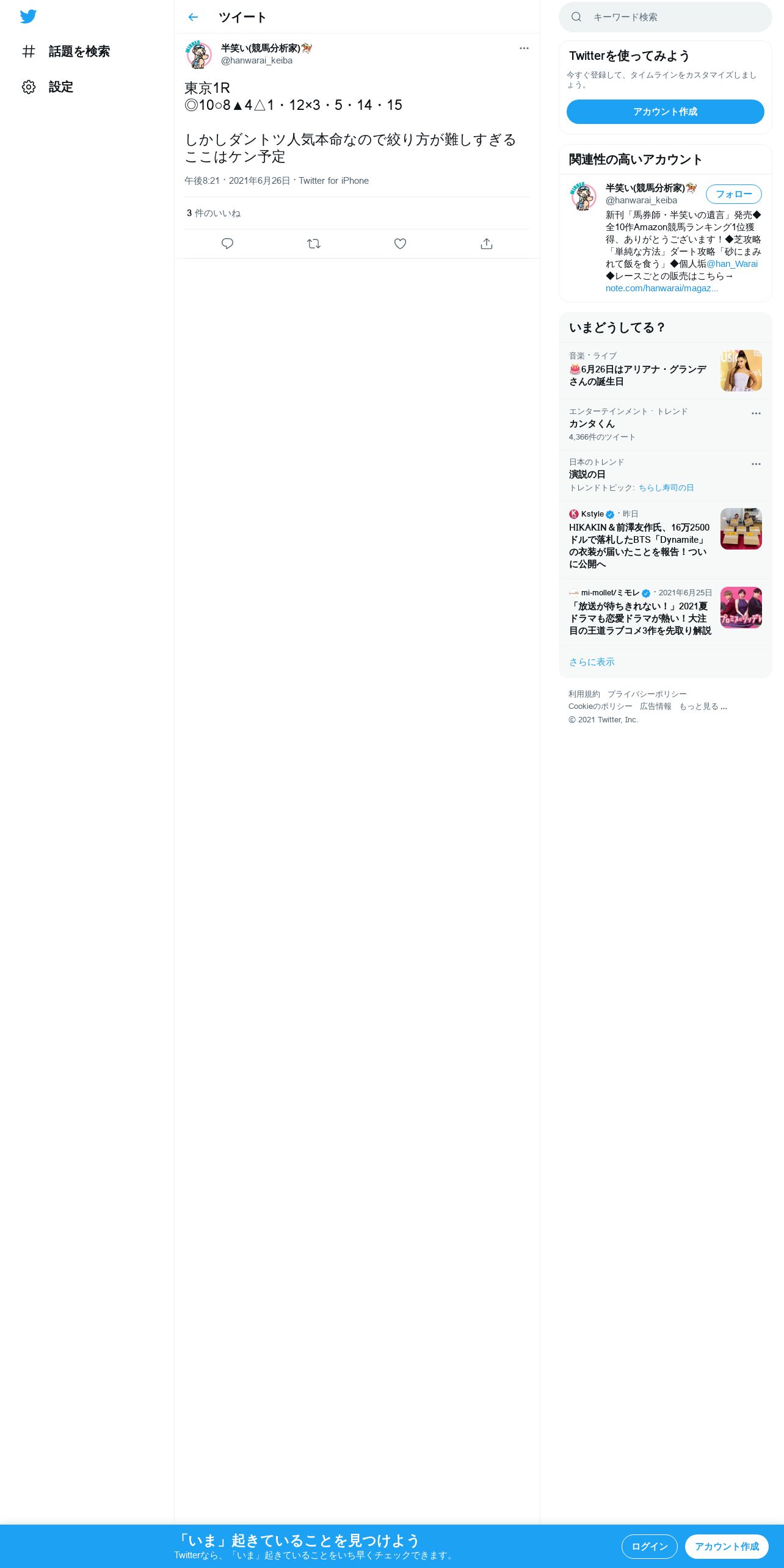 https://twitter.com:443/hanwarai_keiba/status/1408883174365532165