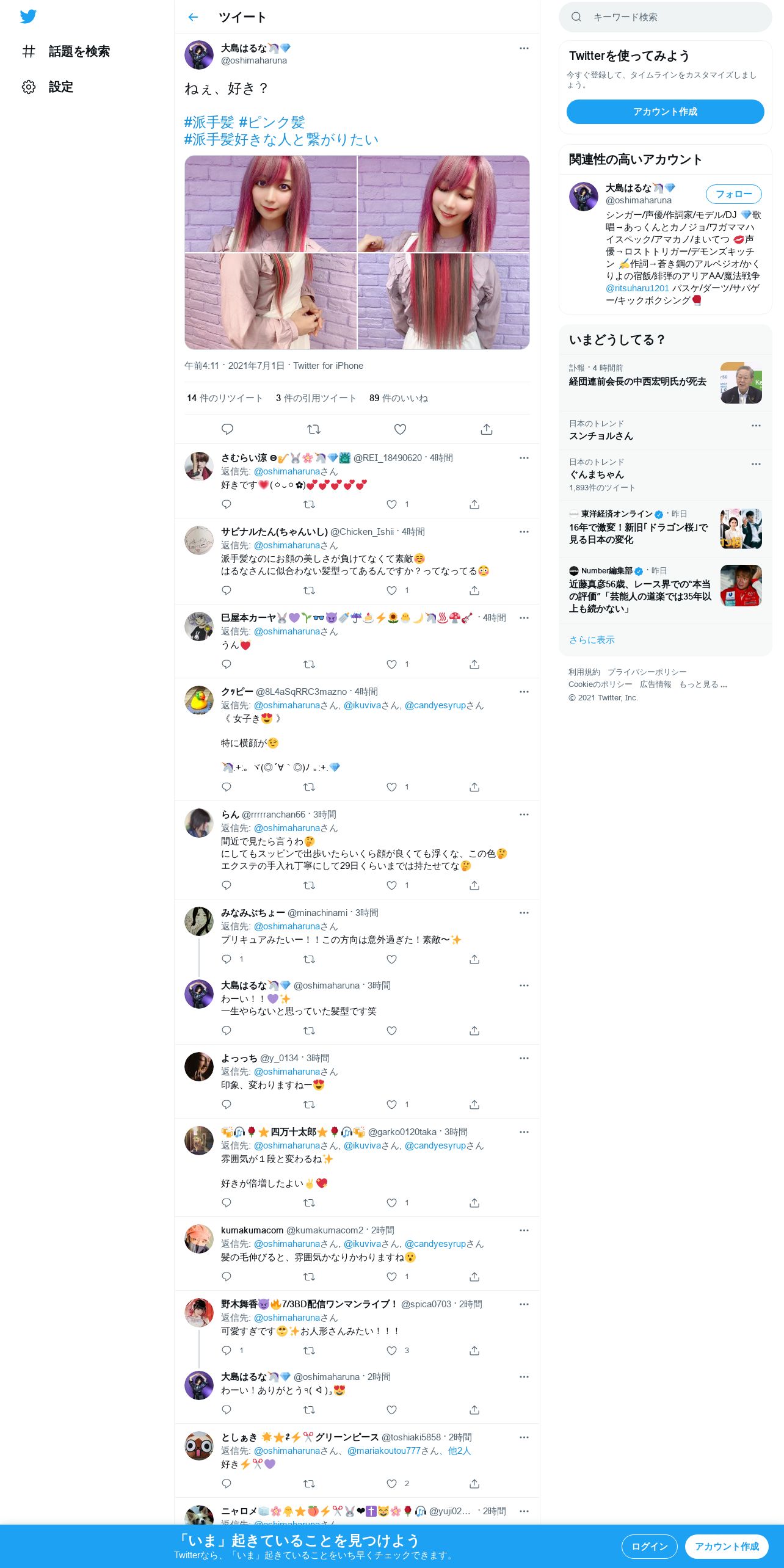 https://twitter.com:443/oshimaharuna/status/1410451027791208455