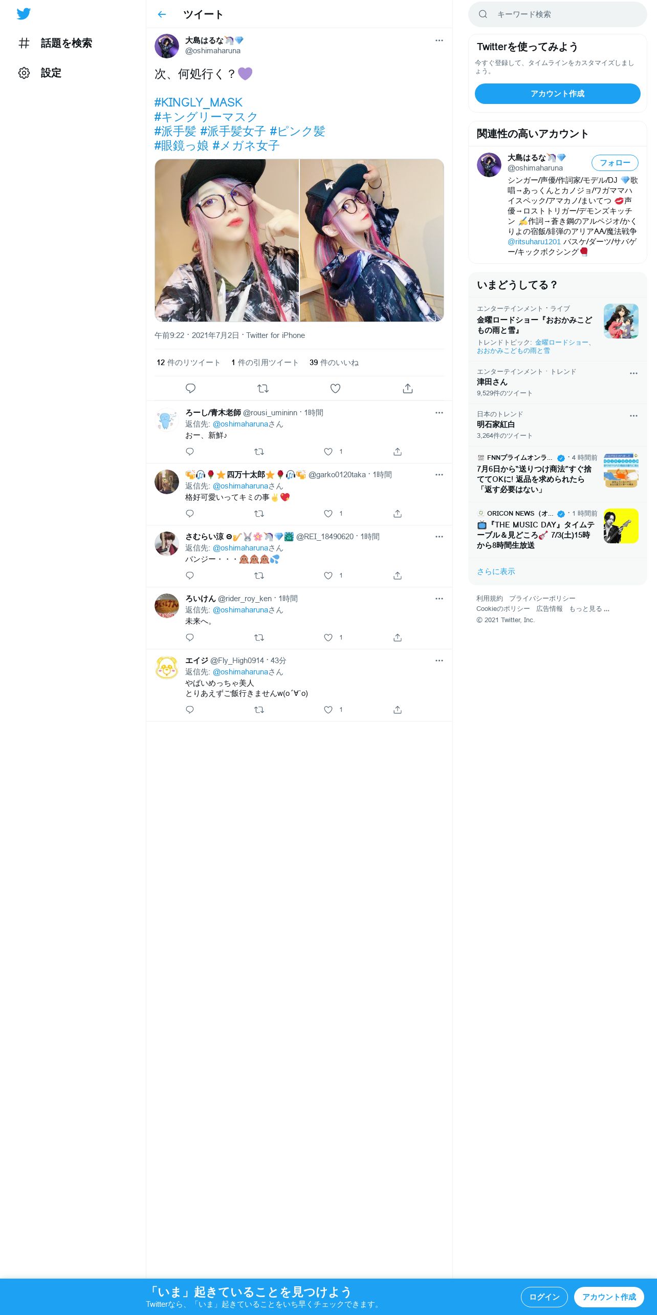 https://twitter.com:443/oshimaharuna/status/1410891584116203523