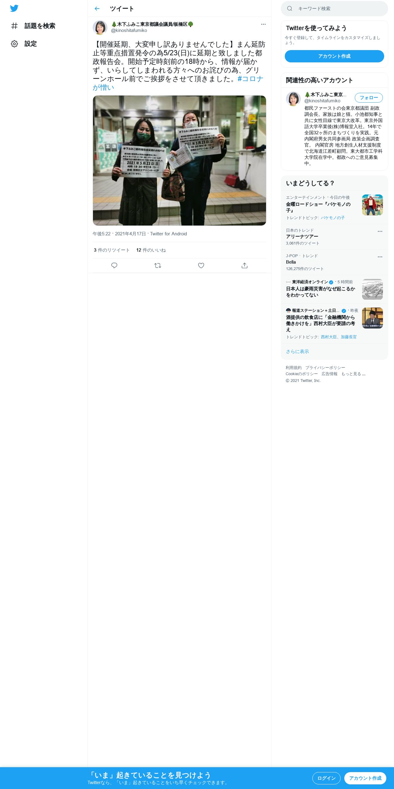 取得元URL: https://twitter.com:443/kinoshitafumiko/status/1383470852520378371