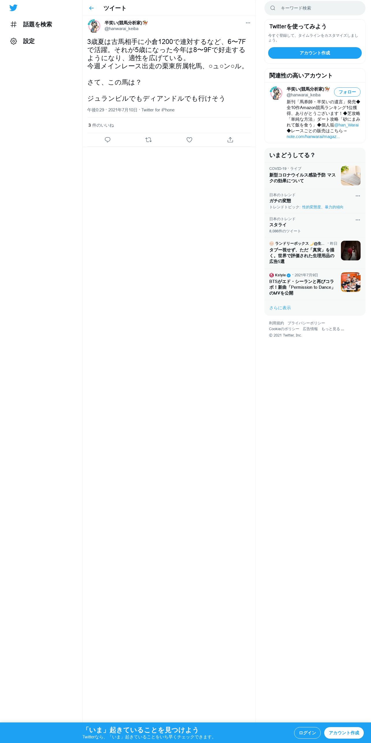 https://twitter.com:443/hanwarai_keiba/status/1413837789796343809