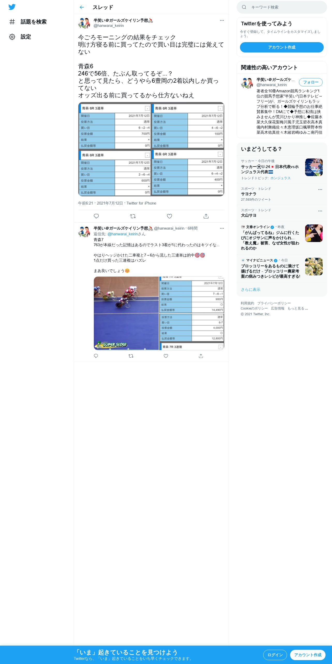 https://twitter.com:443/hanwarai_keirin/status/1414469874357882884