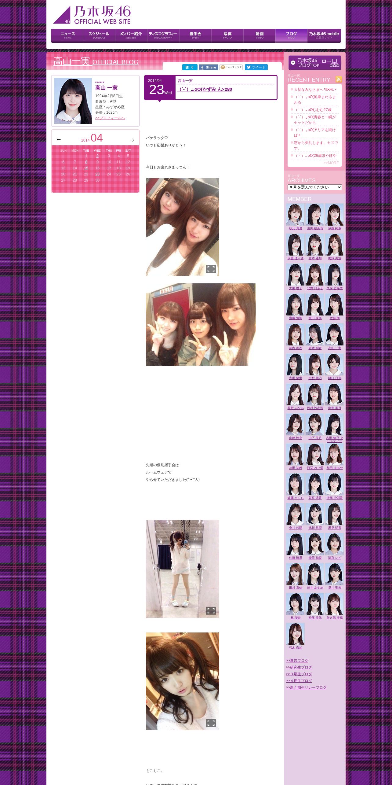 https://blog.nogizaka46.com:443/kazumi.takayama/?d=201404