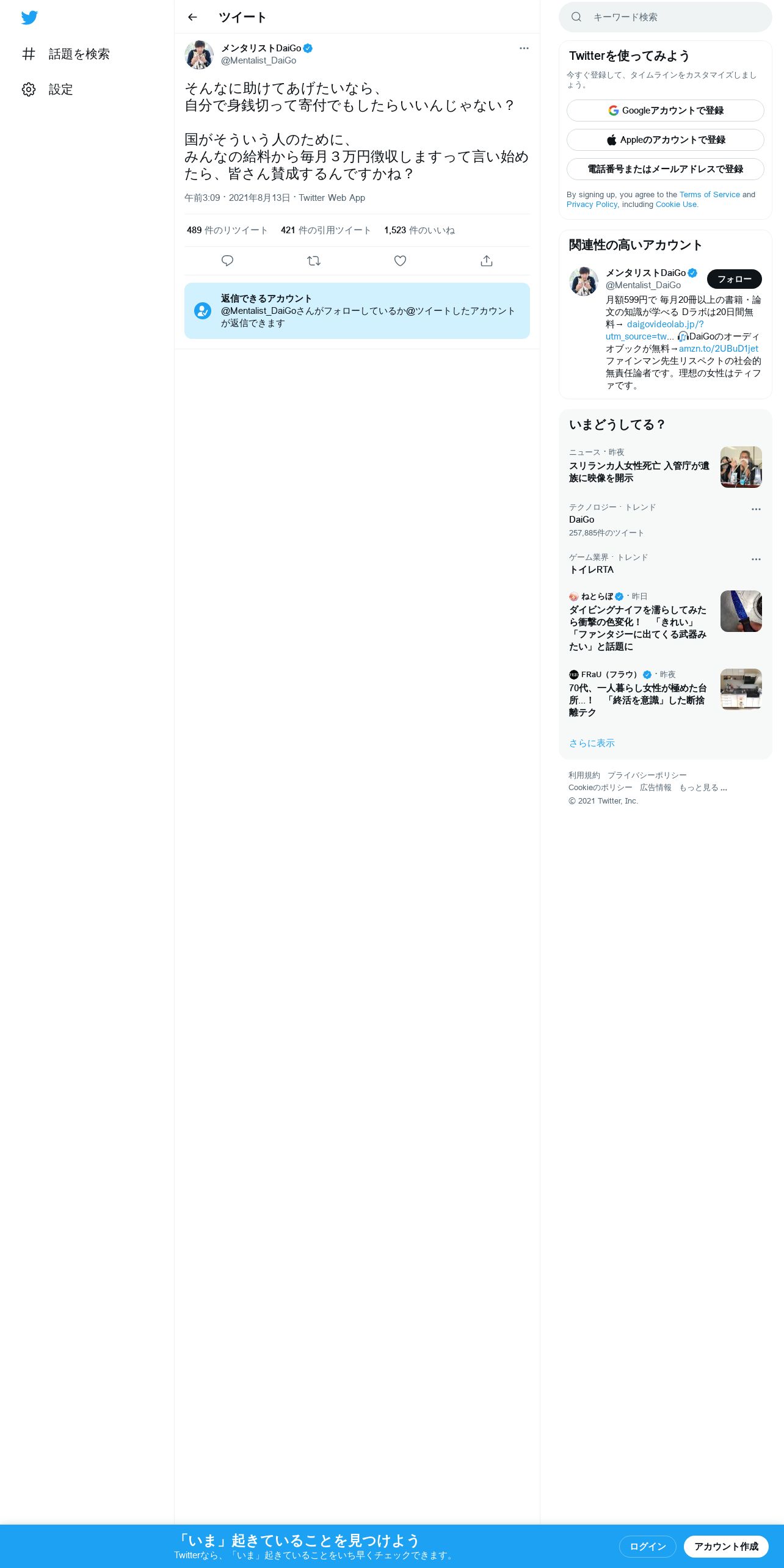取得元URL: https://twitter.com:443/Mentalist_DaiGo/status/1426017947332481030