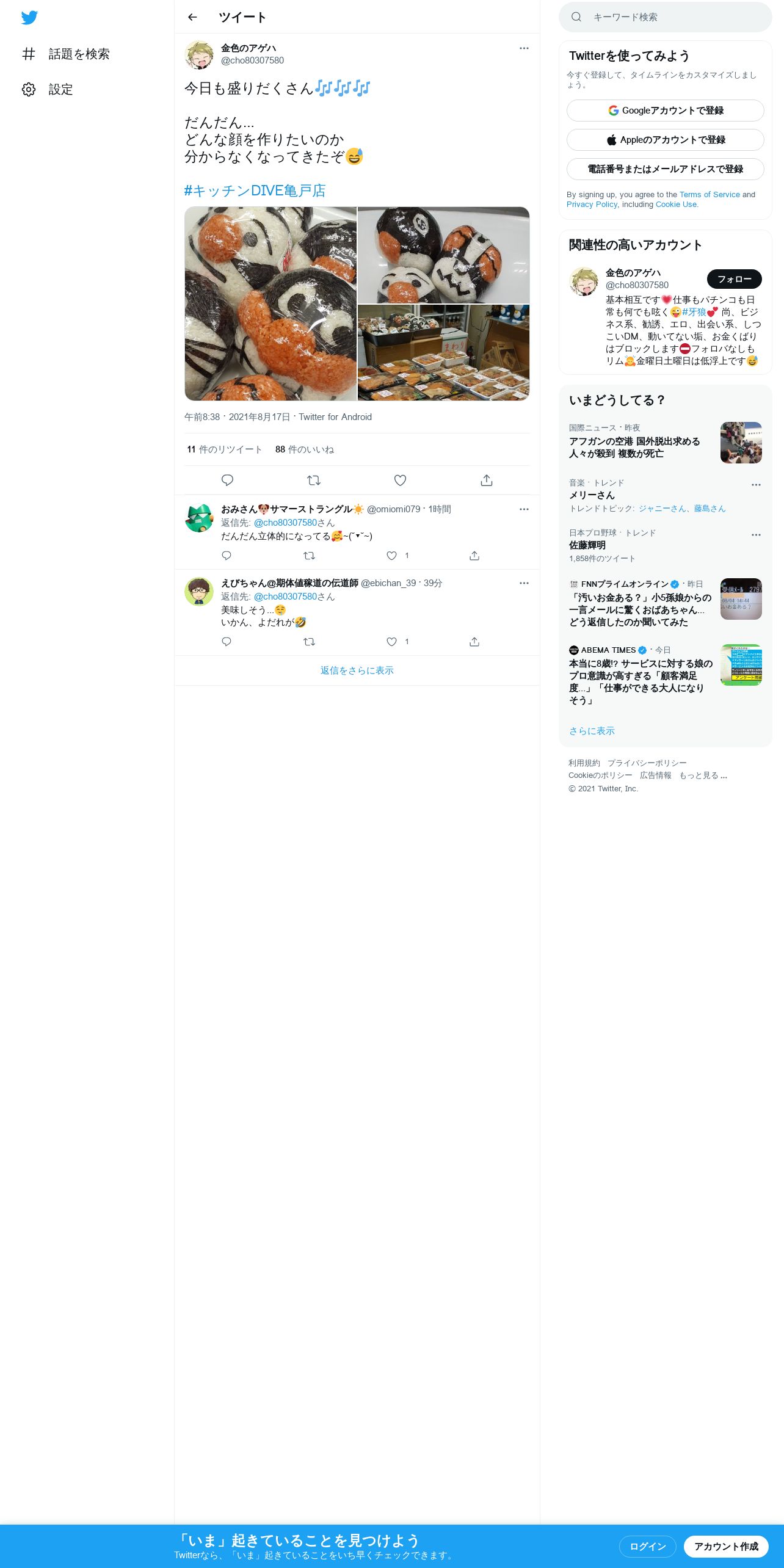 取得元URL: https://twitter.com:443/cho80307580/status/1427550306234093571