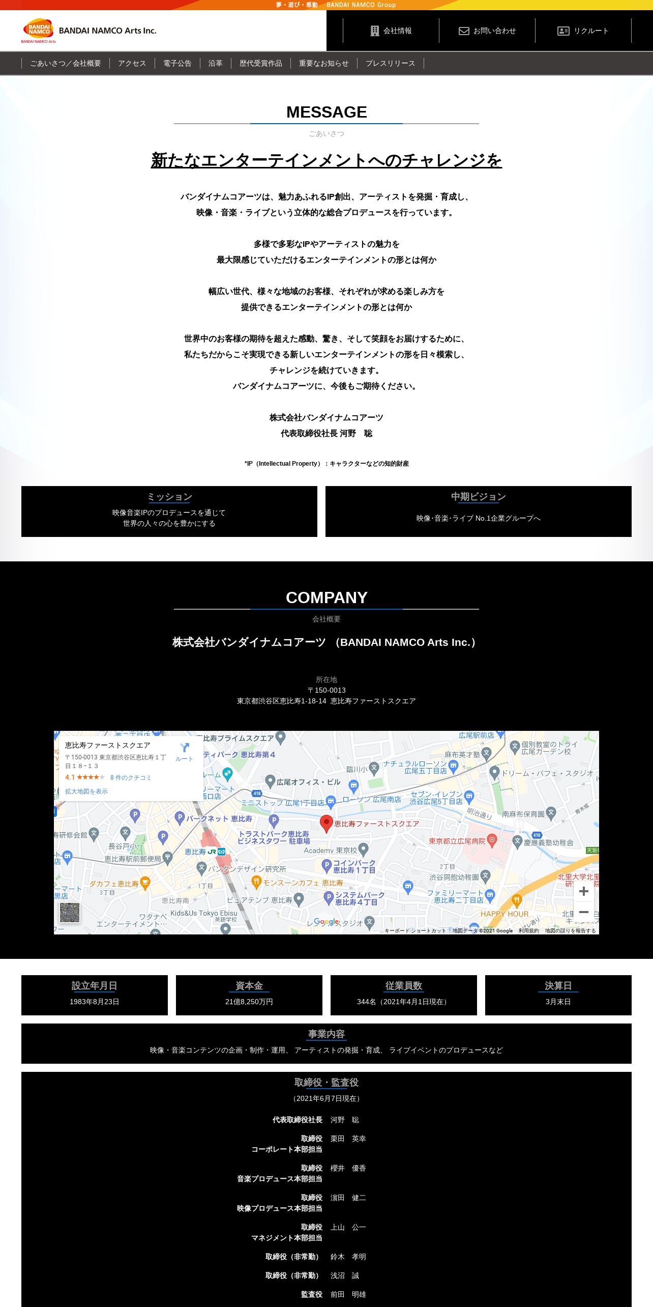 https://www.bandainamcoarts.co.jp:443/company/overview