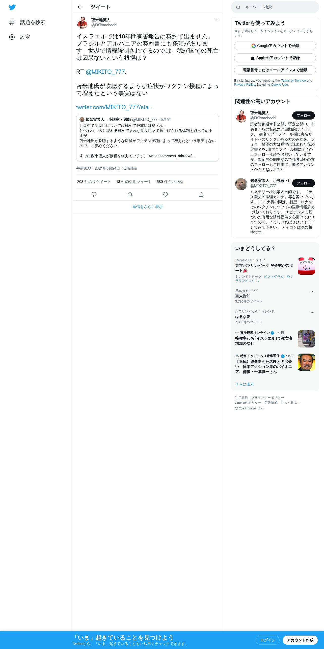 取得元URL: https://twitter.com:443/DrTomabechi/status/1430077435123429378