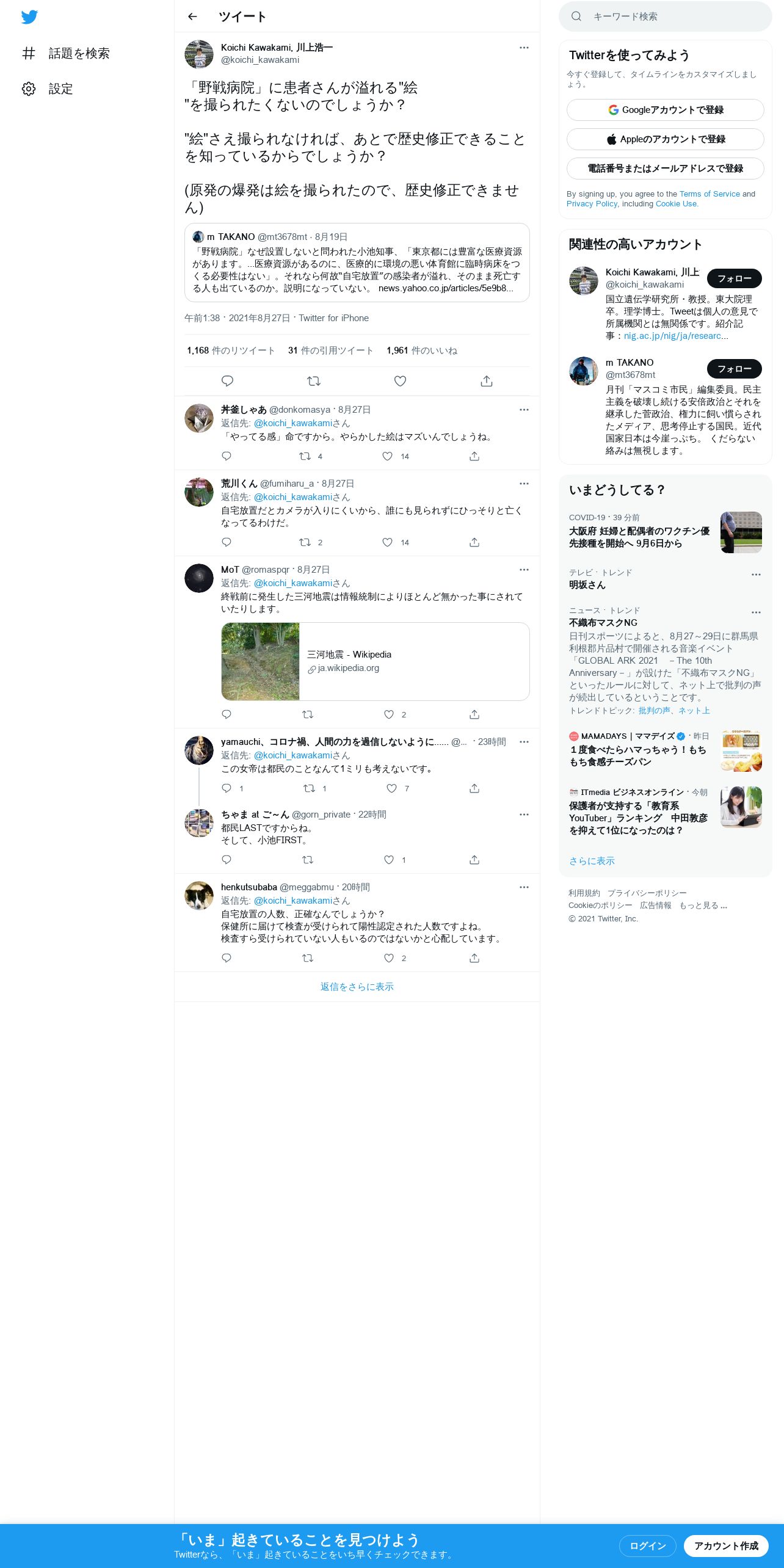 取得元URL: https://twitter.com:443/koichi_kawakami/status/1431068638782525448
