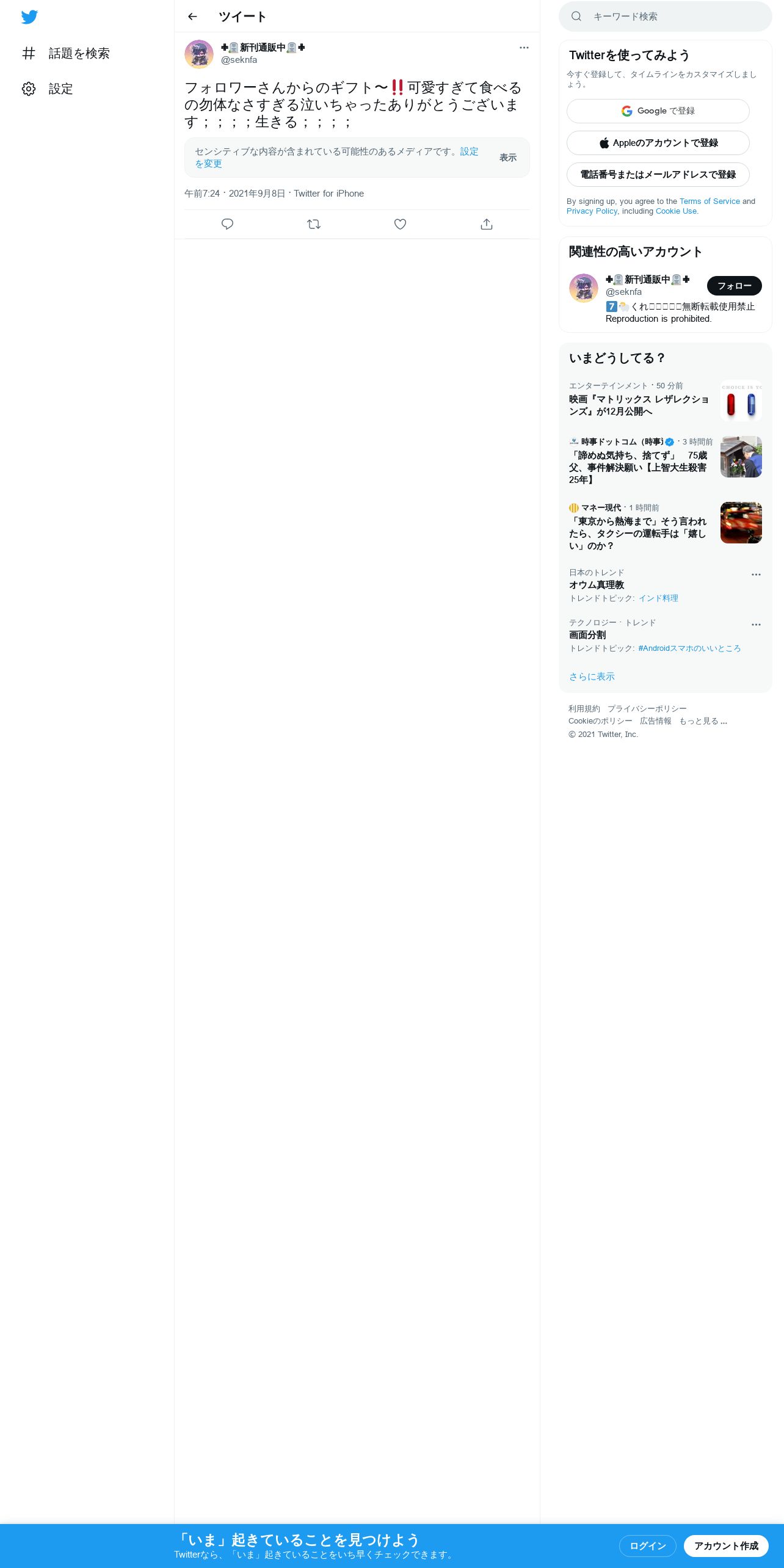 取得元URL: https://twitter.com:443/seknfa/status/1435504268467867648