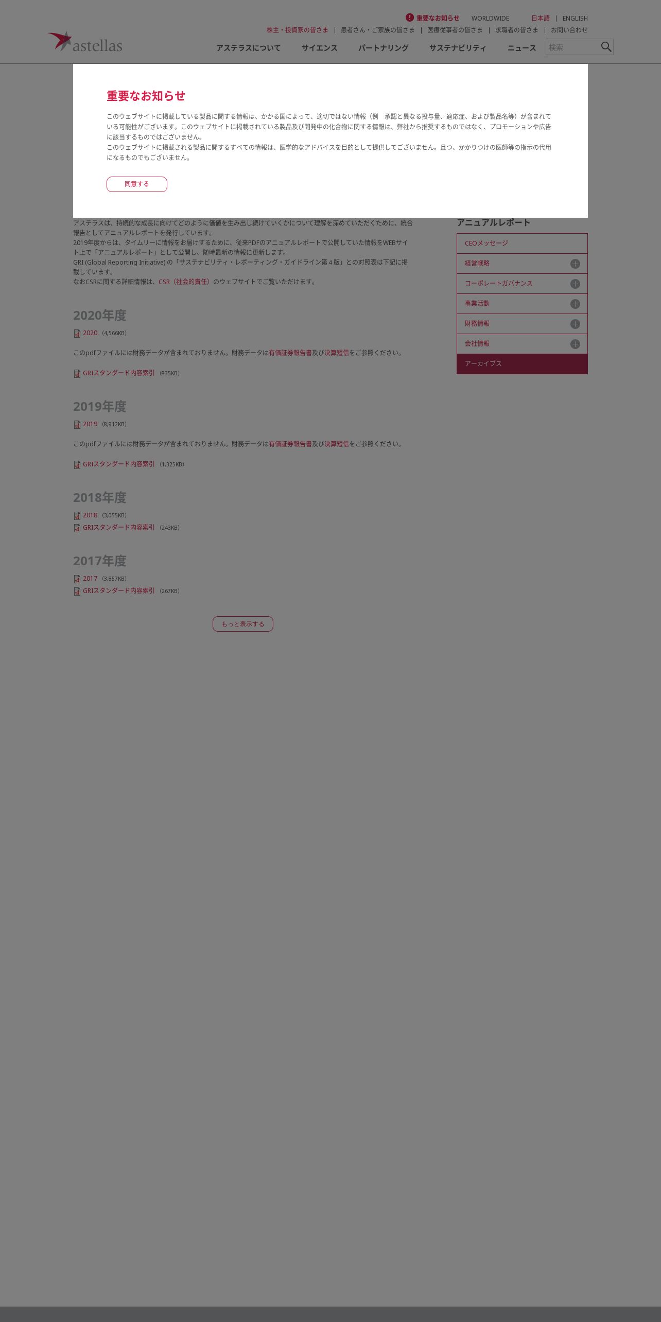 https://www.astellas.com:443/jp/ja/investors/annual-report/archives