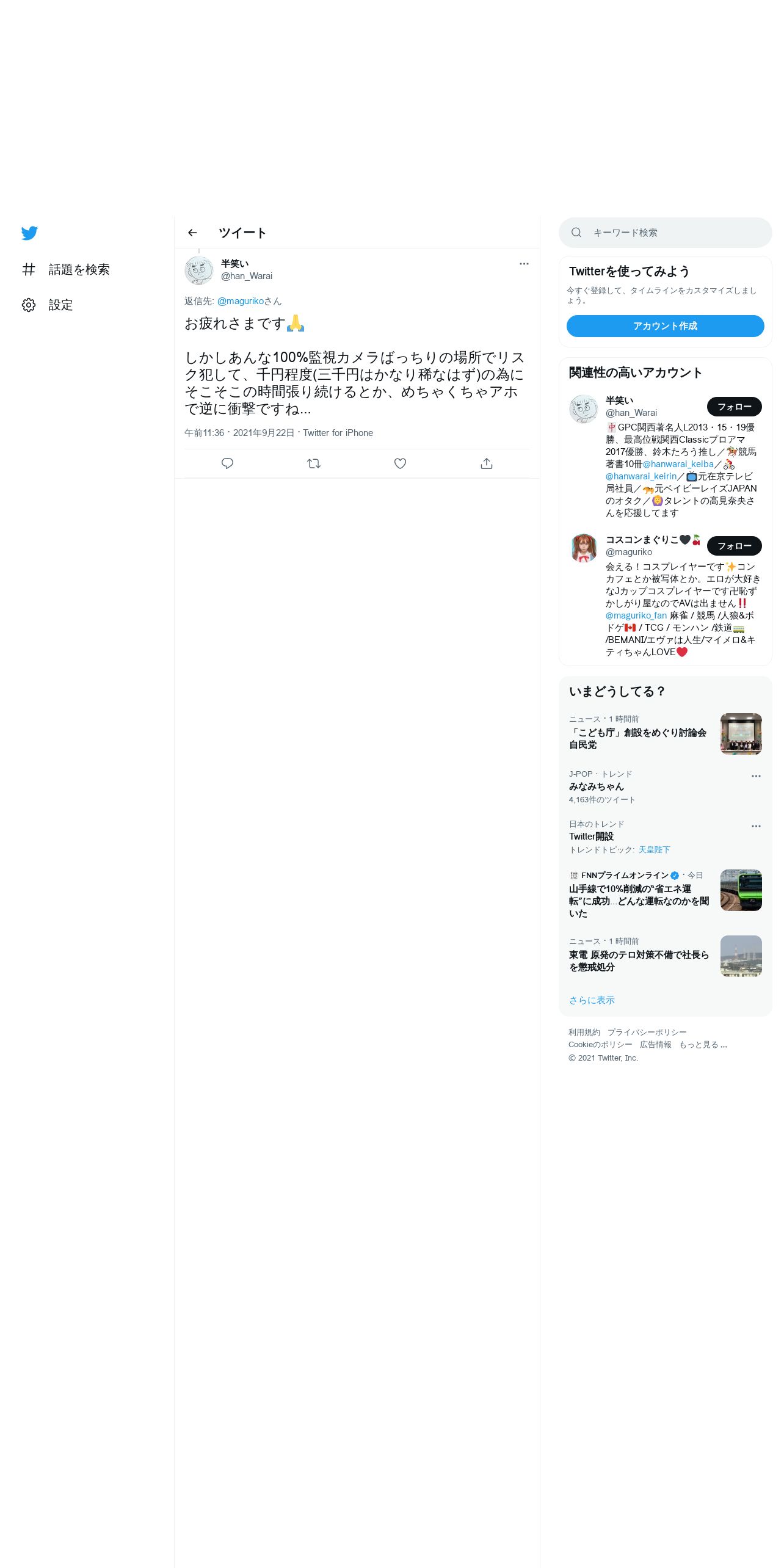 取得元URL: https://twitter.com:443/han_Warai/status/1440641064562429960