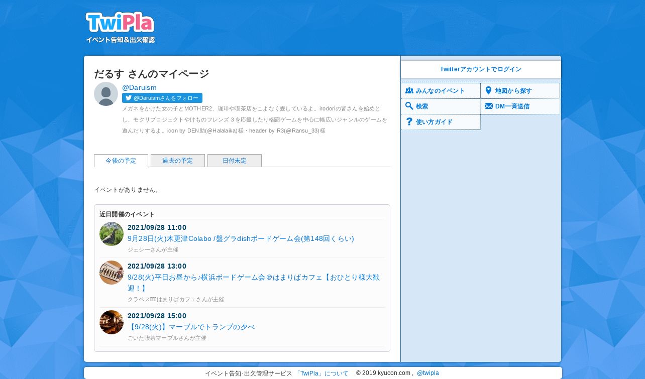 https://twipla.jp:443/users/Daruism