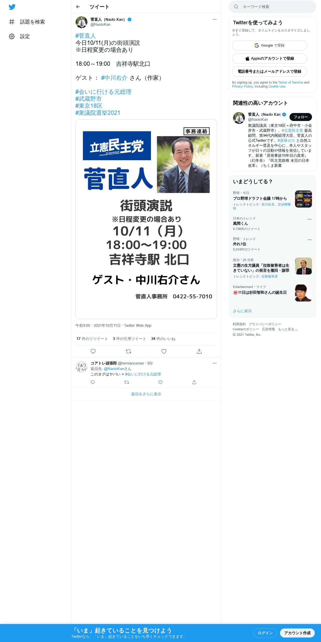 取得元URL: https://twitter.com:443/NaotoKan/status/1447487138145046530