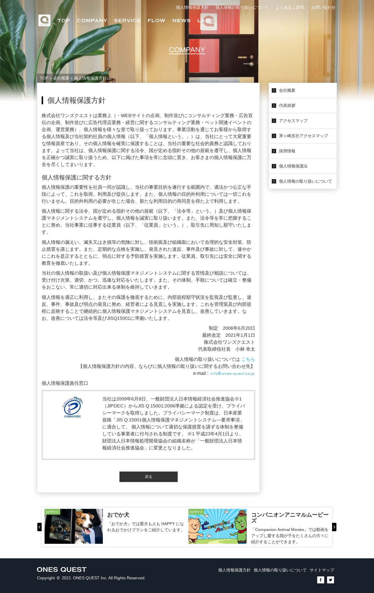 https://ones-quest.co.jp:443/company/p_policy.php