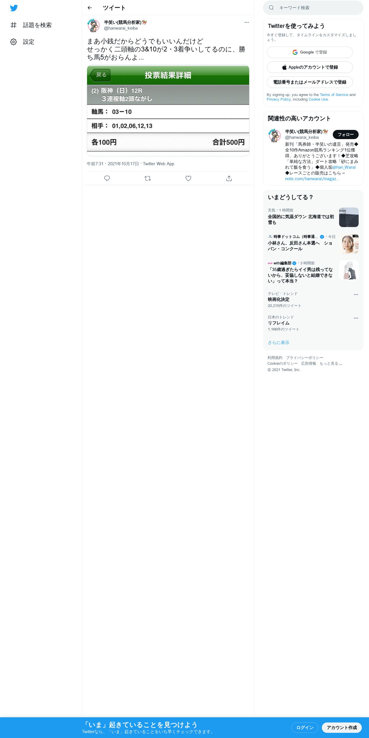 https://twitter.com:443/hanwarai_keiba/status/1449639091805442048