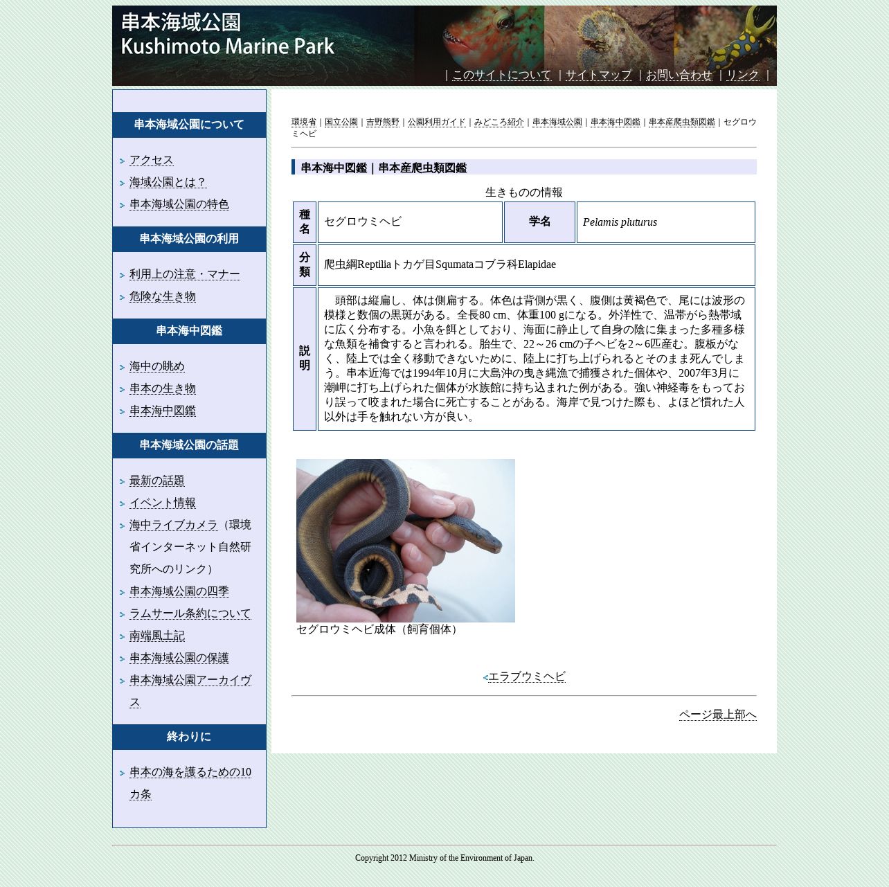 https://www.env.go.jp:443/nature/nco/kinki/kushimoto/JP/zukan/reptile/reptile0008_seguroumihebi.html