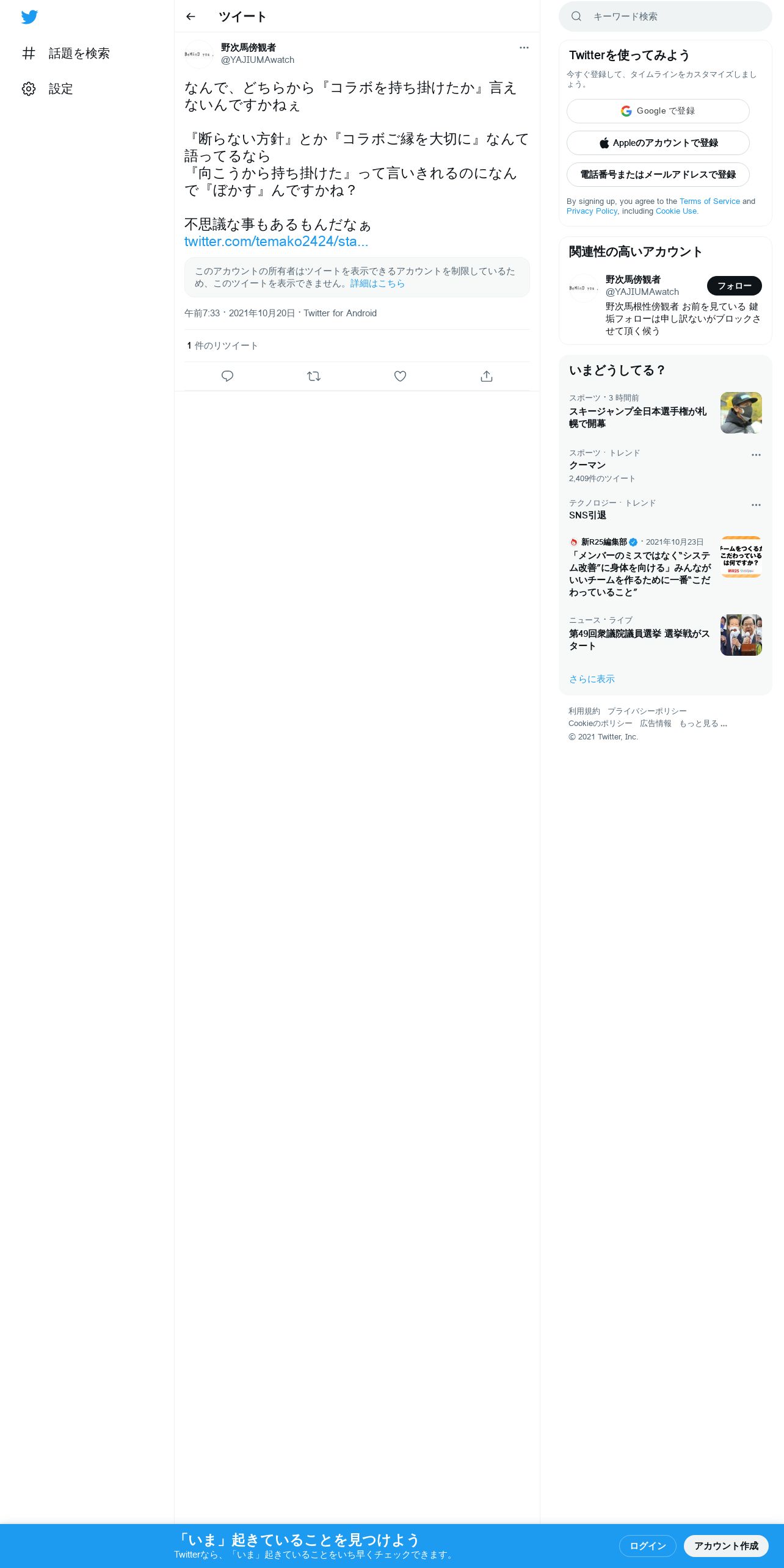 取得元URL: https://twitter.com:443/YAJIUMAwatch/status/1450726932593577985