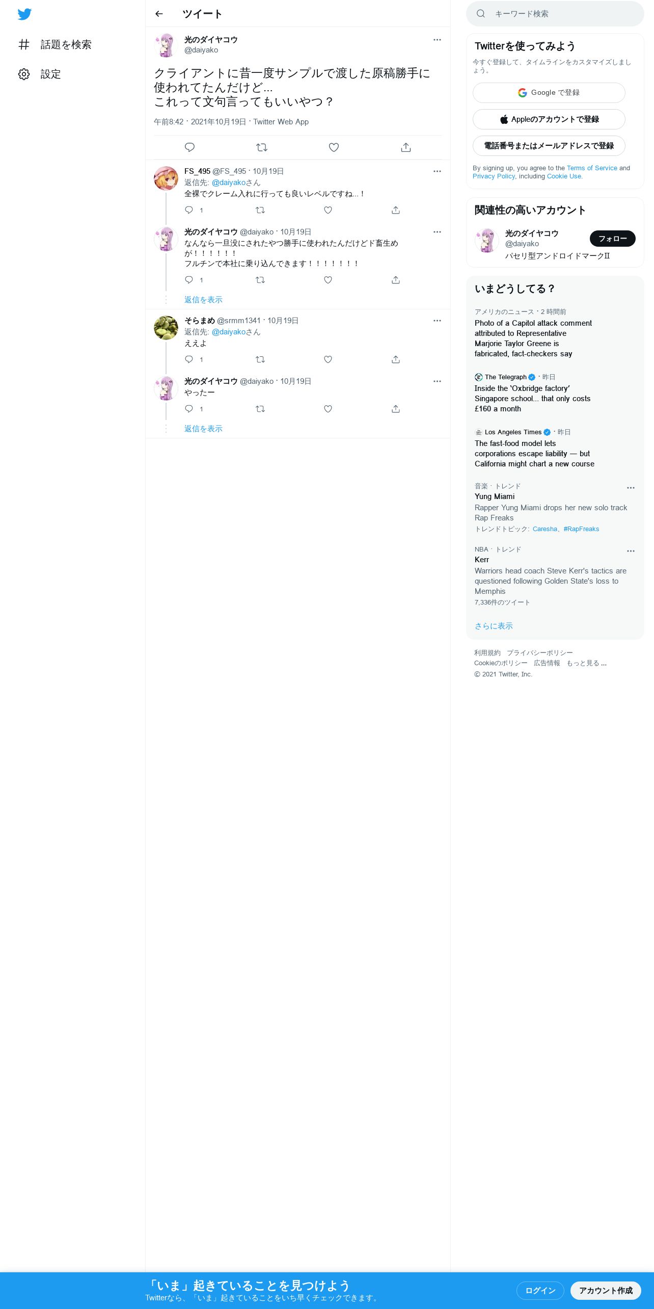 https://mobile.twitter.com:443/daiyako/status/1450381816414629897