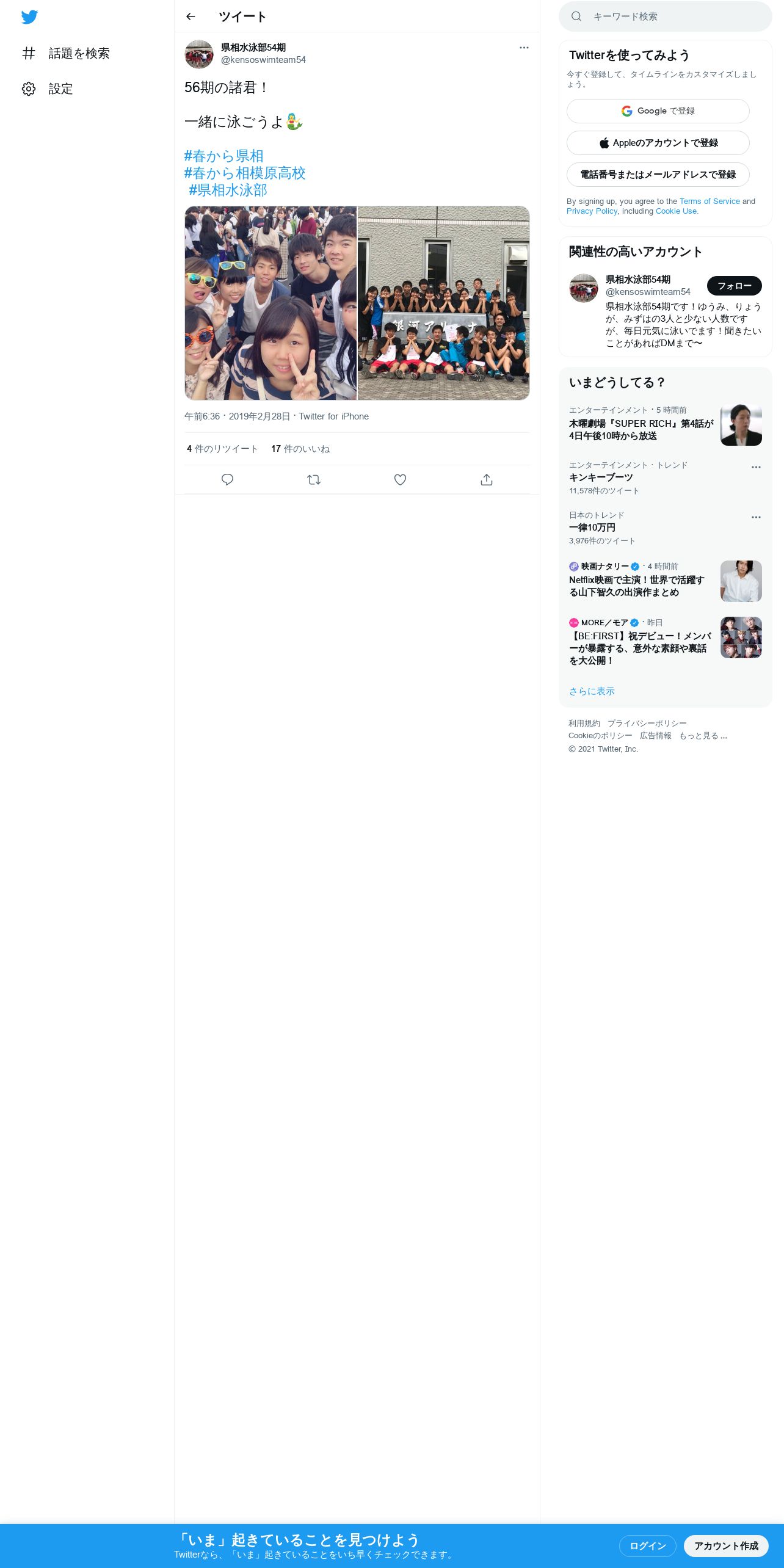 取得元URL: https://twitter.com:443/kensoswimteam54/status/1101008270020366336