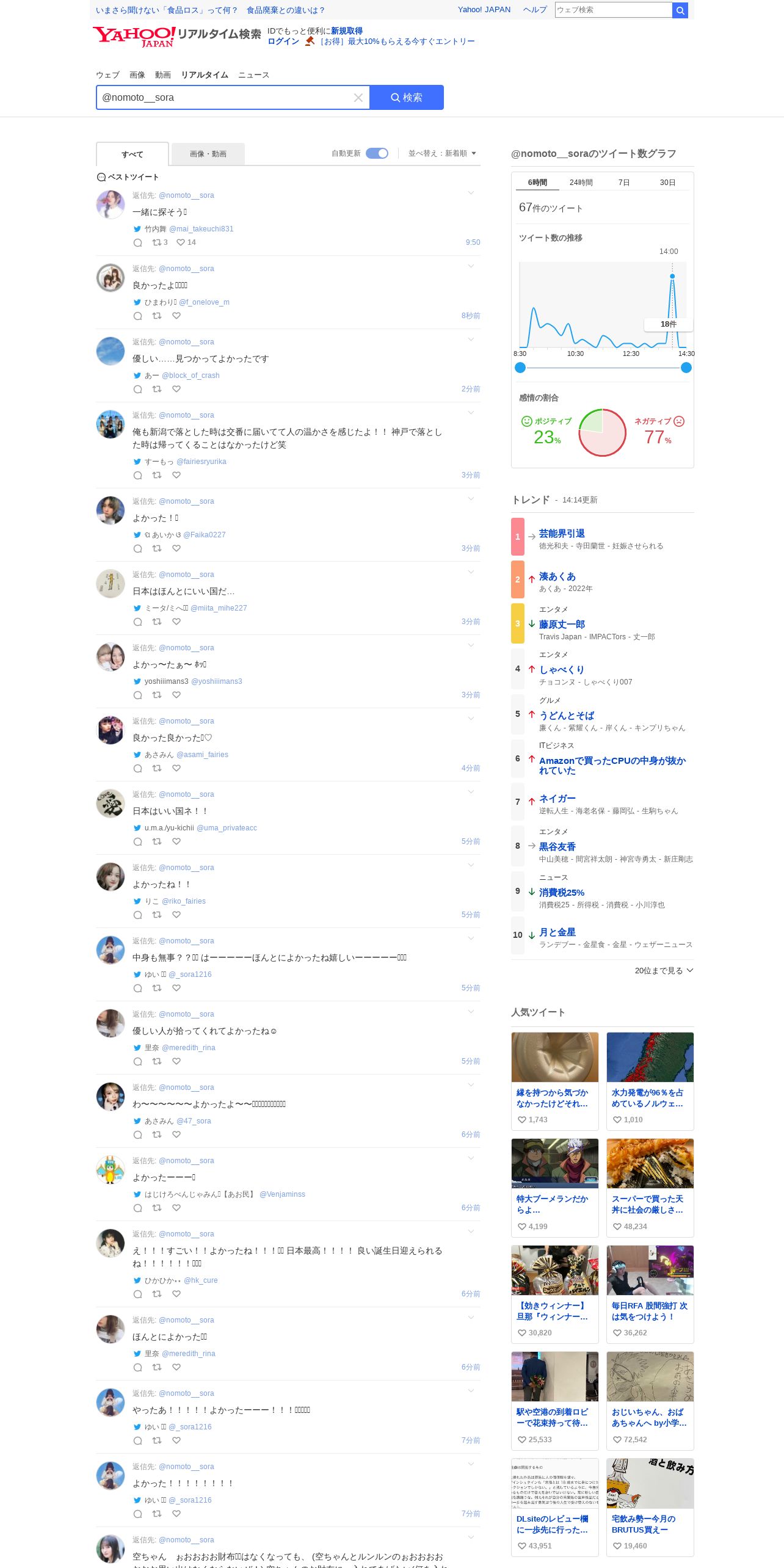 https://search.yahoo.co.jp:443/realtime/search?p=%40nomoto__sora