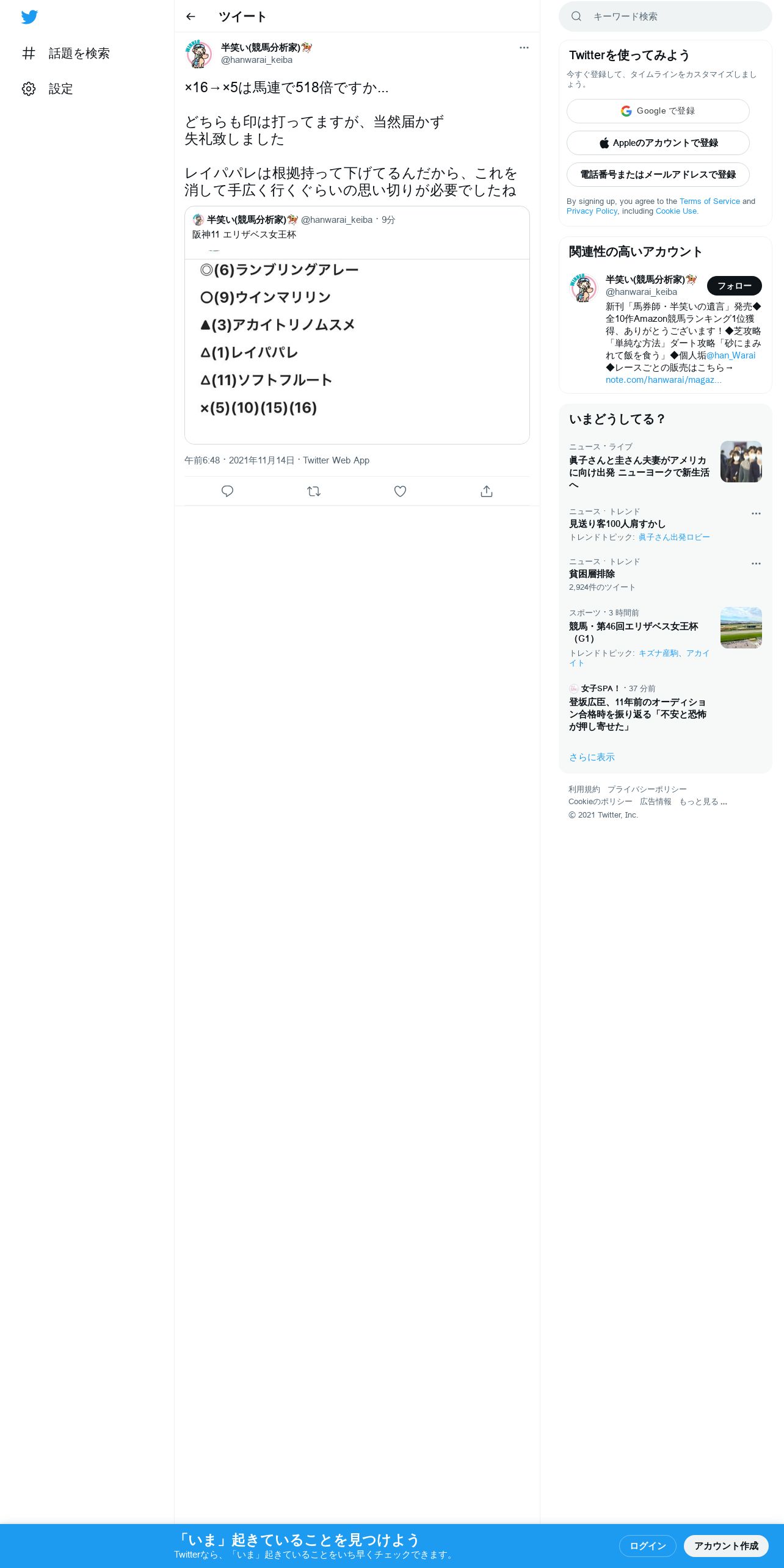 https://twitter.com:443/hanwarai_keiba/status/1459775168138547204