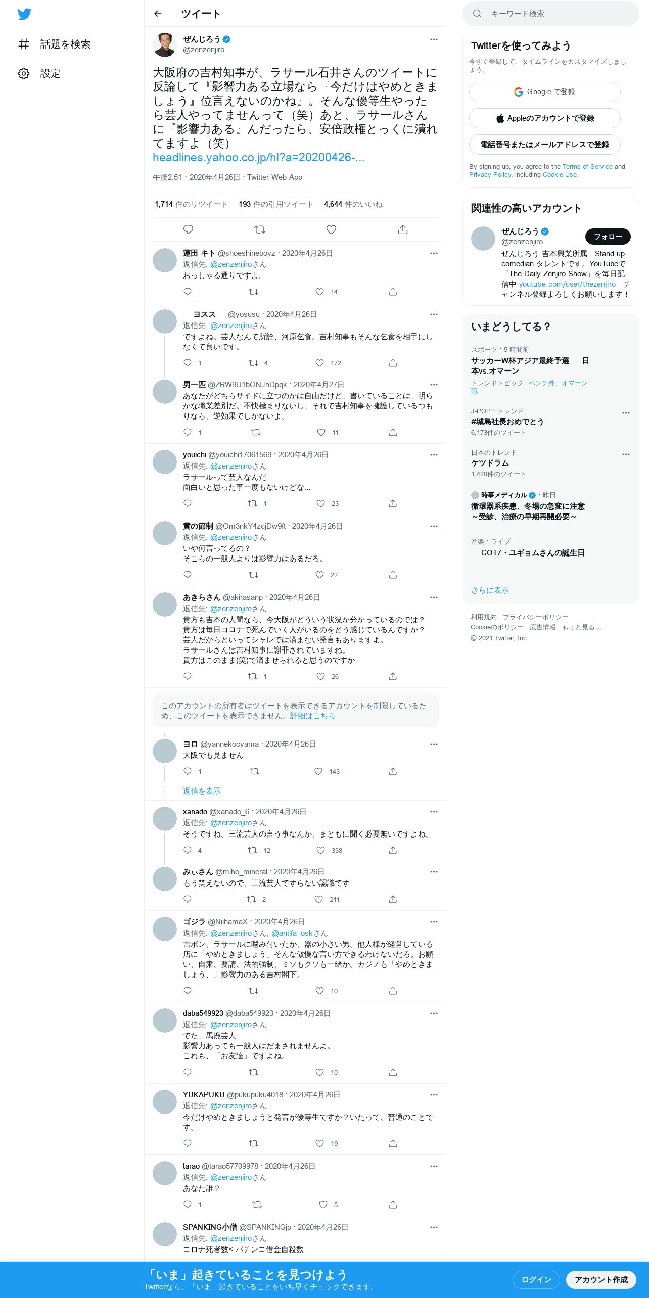 取得元URL: https://twitter.com:443/zenzenjiro/status/1254422787969527809