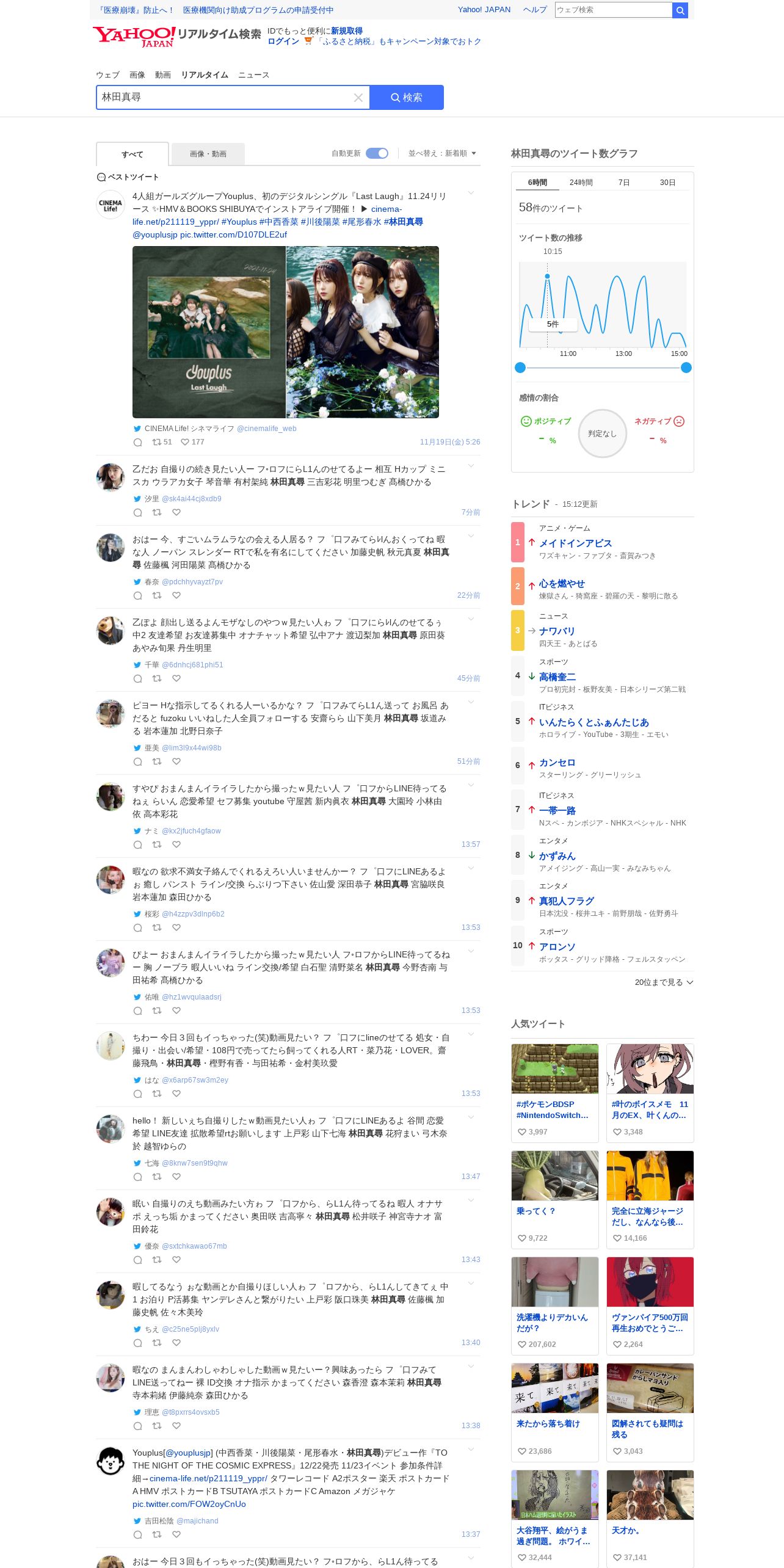 https://search.yahoo.co.jp:443/realtime/search?p=%E6%9E%97%E7%94%B0%E7%9C%9F%E5%B0%8B