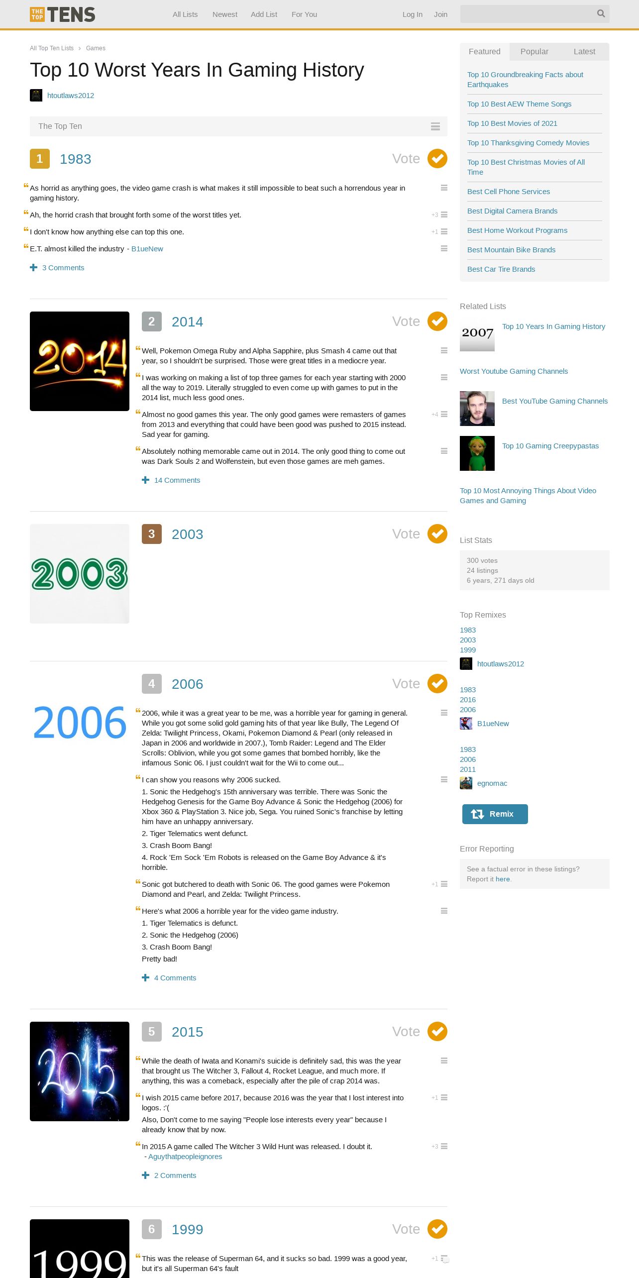 https://www.thetoptens.com:443/worst-years-gaming-history/