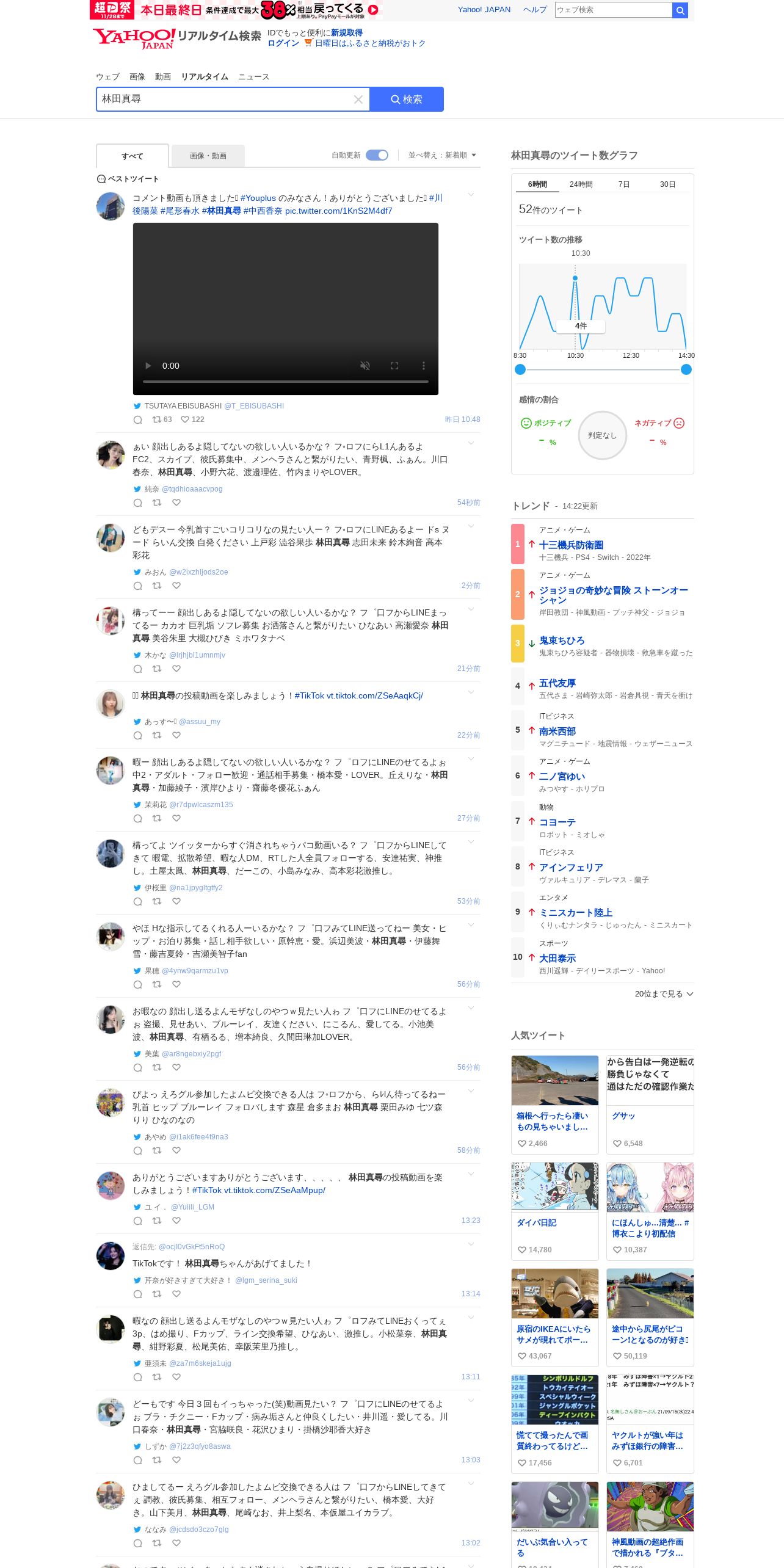 https://search.yahoo.co.jp:443/realtime/search?p=%E6%9E%97%E7%94%B0%E7%9C%9F%E5%B0%8B
