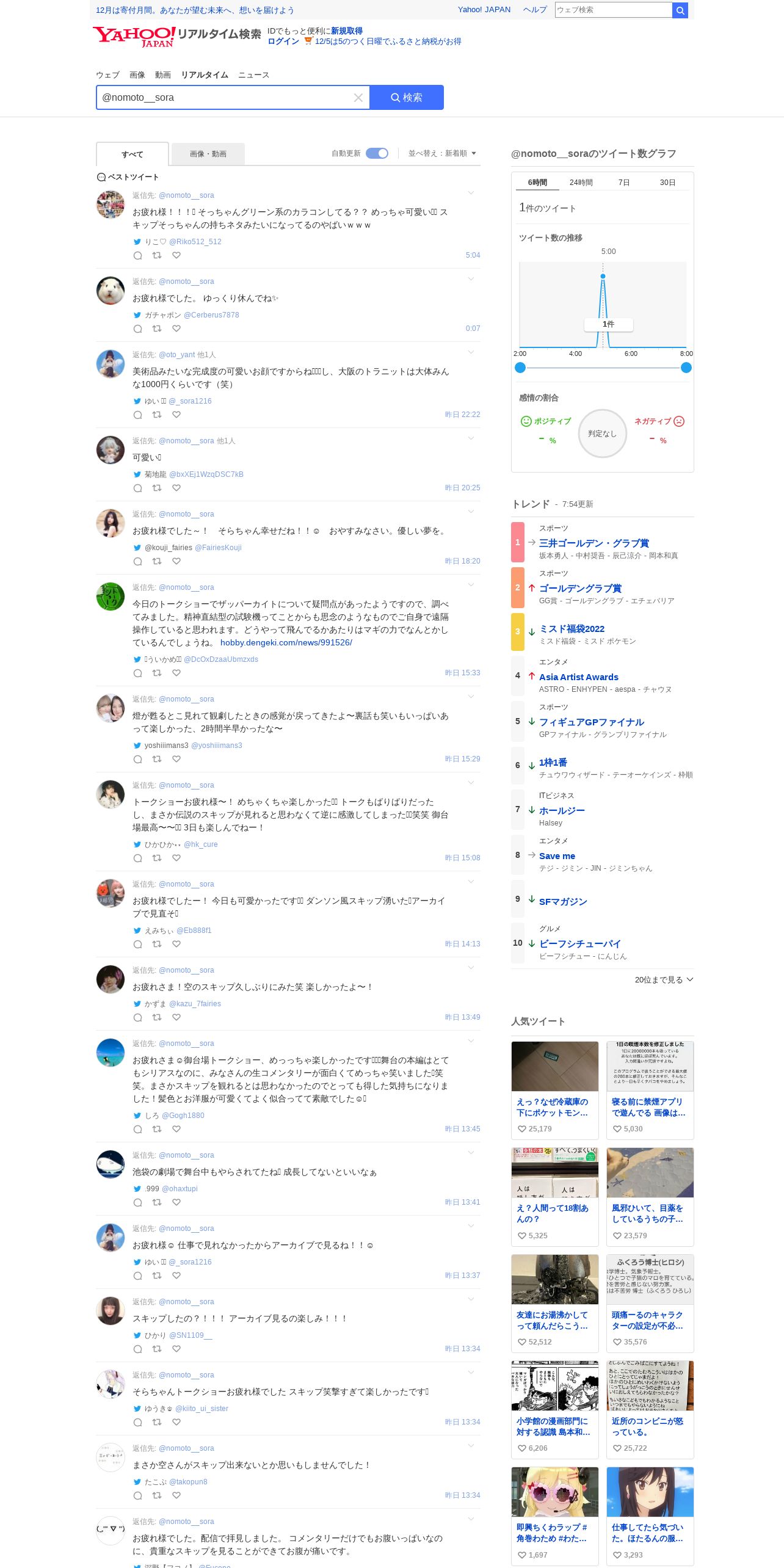 https://search.yahoo.co.jp:443/realtime/search?p=%40nomoto__sora