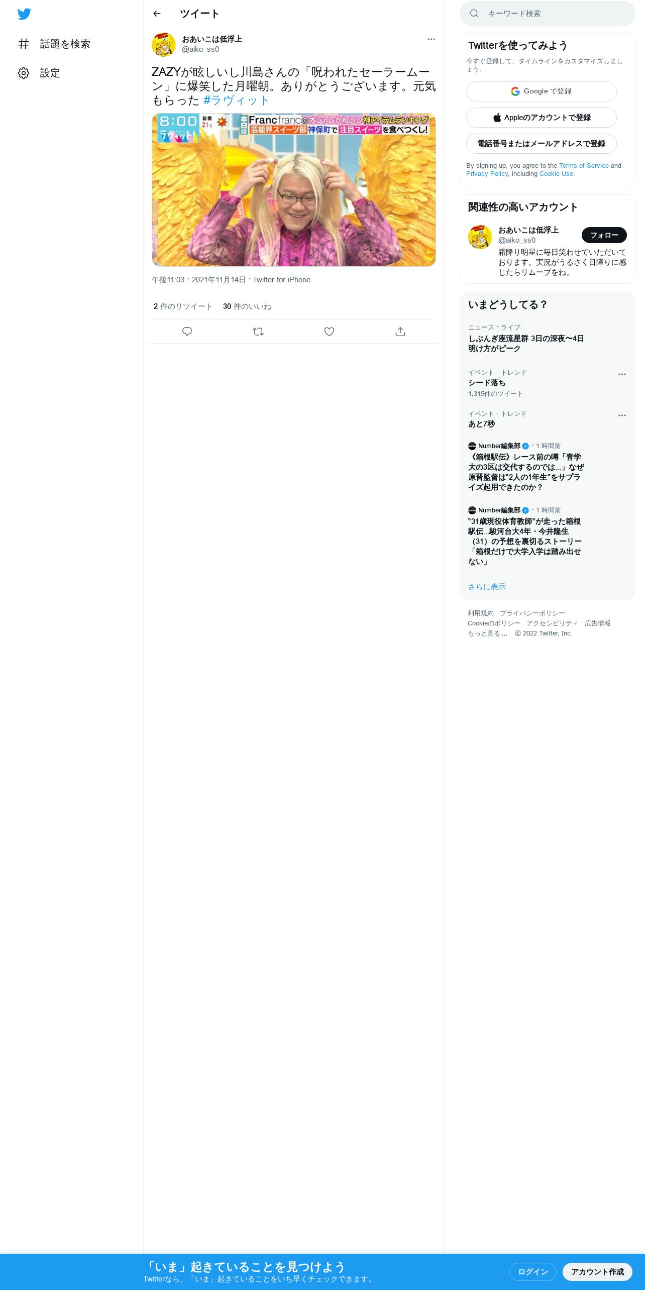 取得元URL: https://twitter.com:443/aiko_ss0/status/1460020523283275776