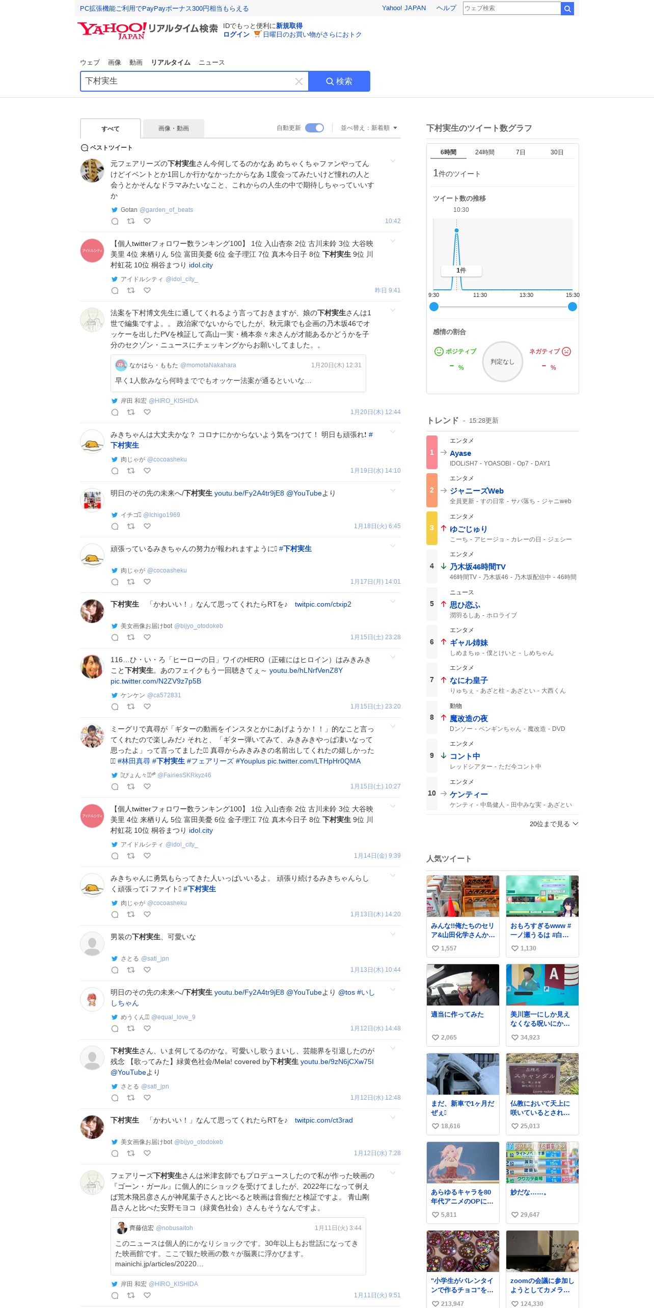 https://search.yahoo.co.jp:443/realtime/search?p=%E4%B8%8B%E6%9D%91%E5%AE%9F%E7%94%9F