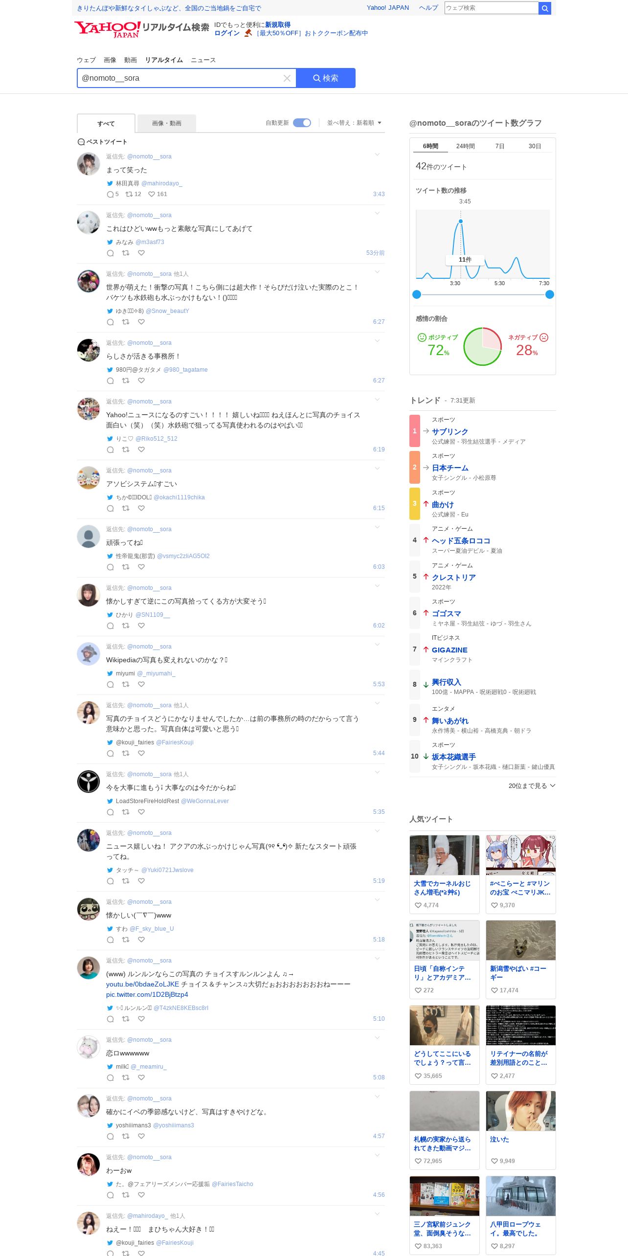 https://search.yahoo.co.jp:443/realtime/search?p=%40nomoto__sora
