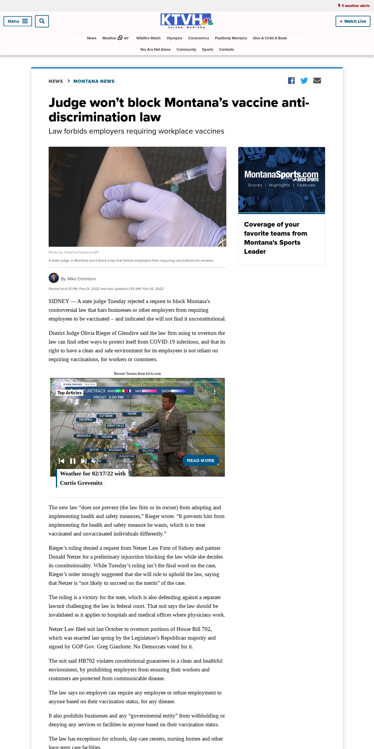 https://www.ktvh.com:443/news/montana-news/judge-wont-block-montanas-vaccine-anti-discrimination-law