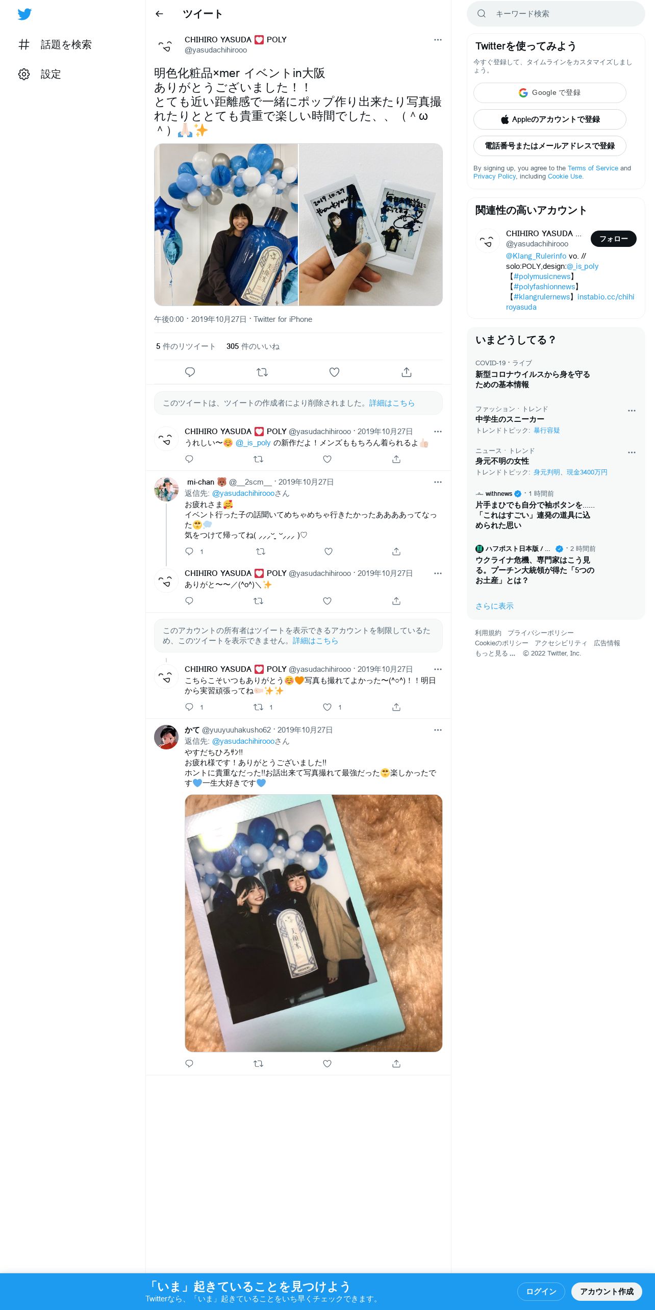 取得元URL: https://twitter.com:443/yasudachihirooo/status/1188425353775026176