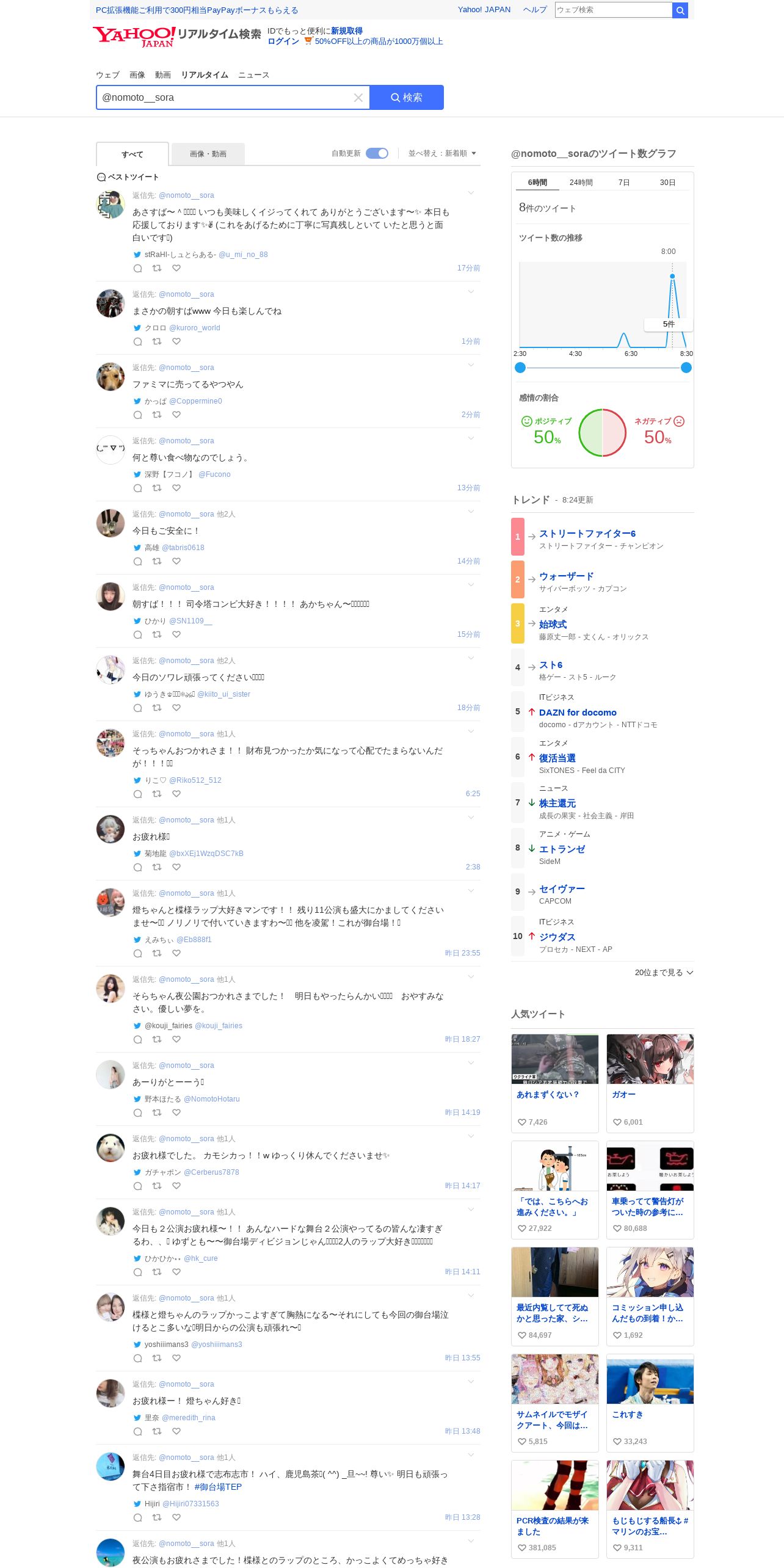 https://search.yahoo.co.jp:443/realtime/search?p=%40nomoto__sora