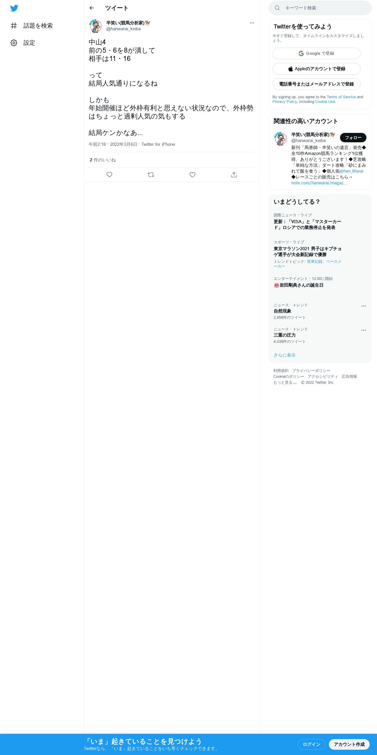 https://twitter.com:443/hanwarai_keiba/status/1500294771986042882