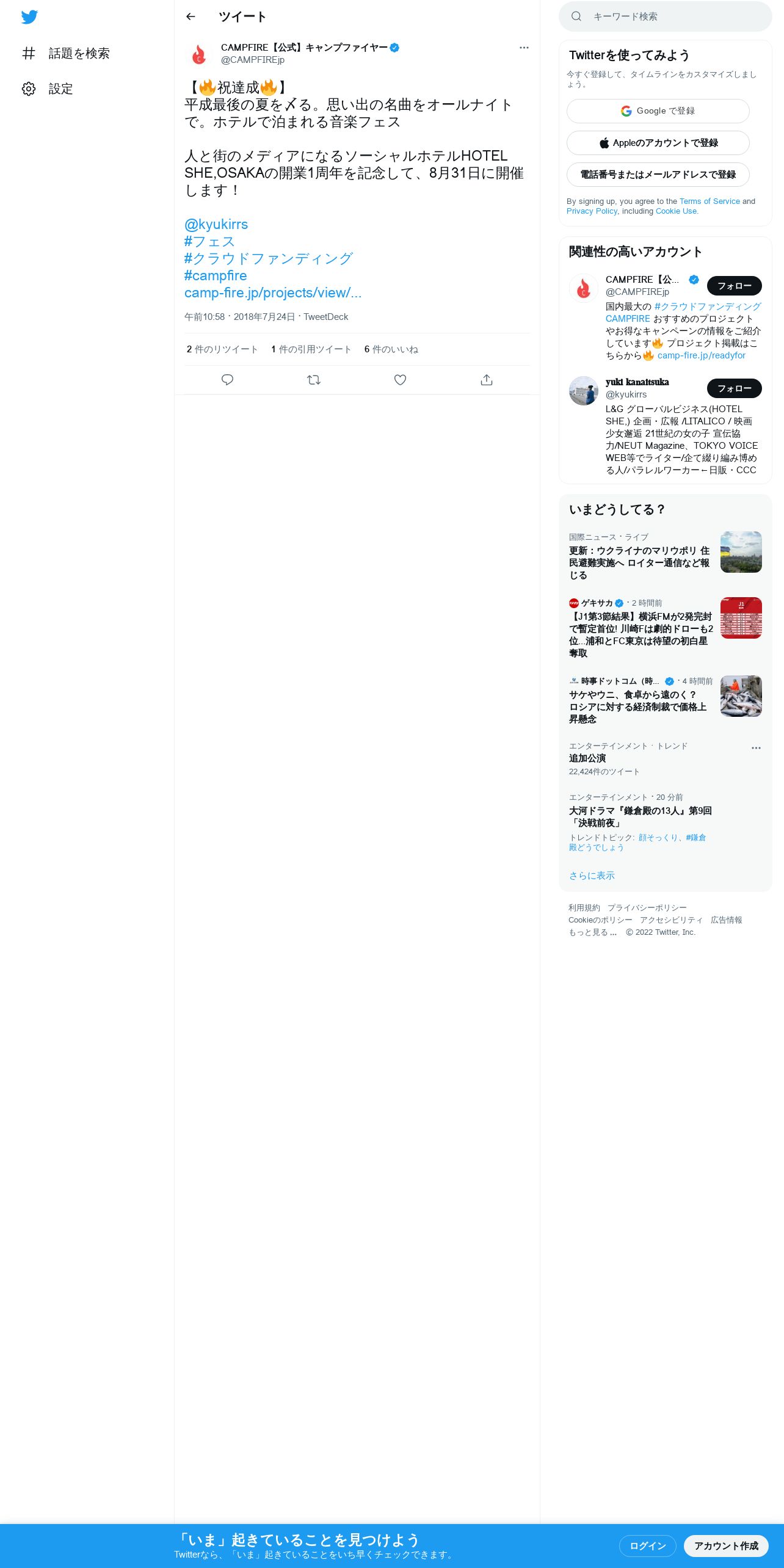 取得元URL: https://twitter.com:443/CAMPFIREjp/status/1021711089594068992
