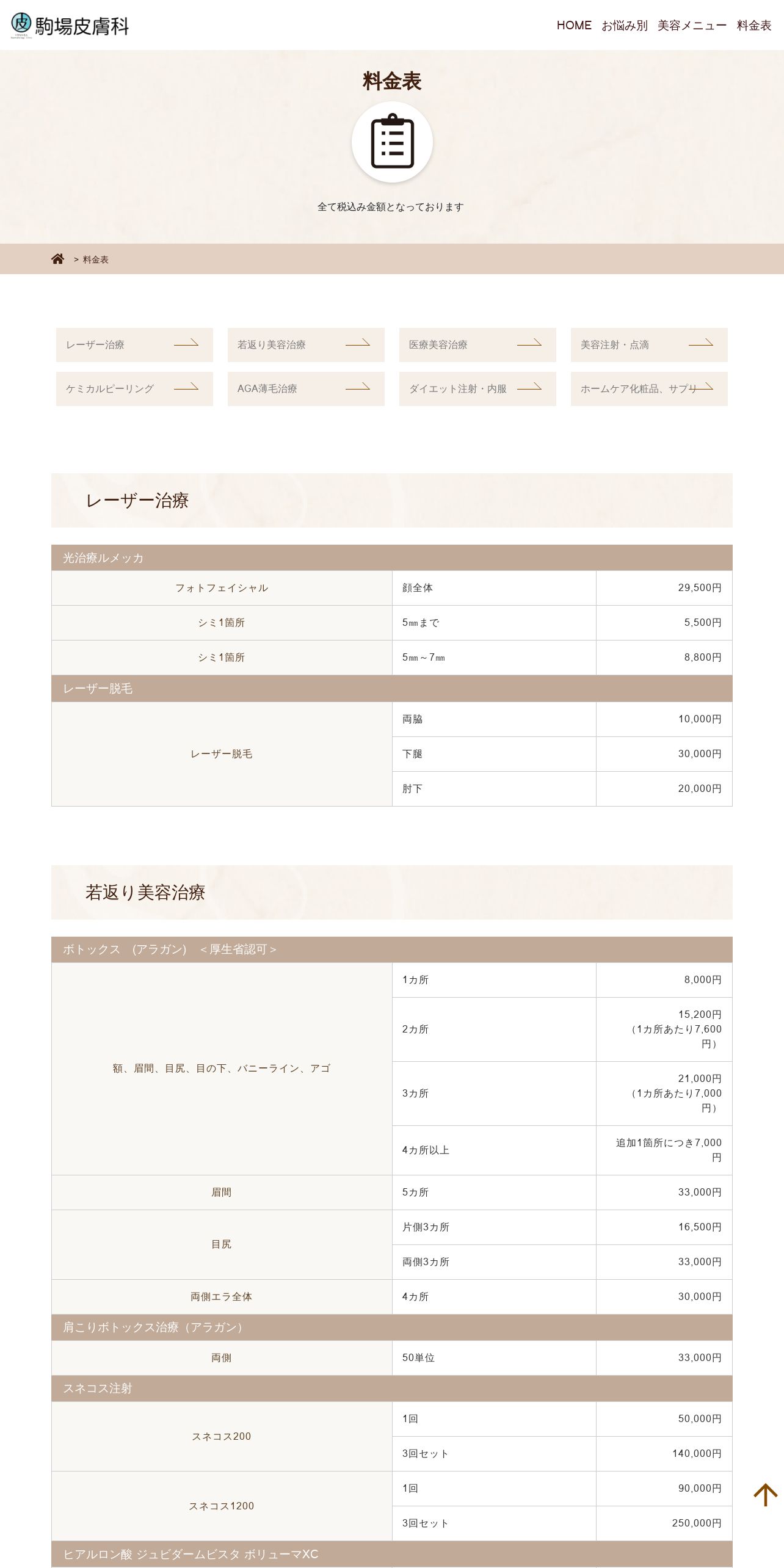https://www.komaba-hifuka.com:443/biyou/price/