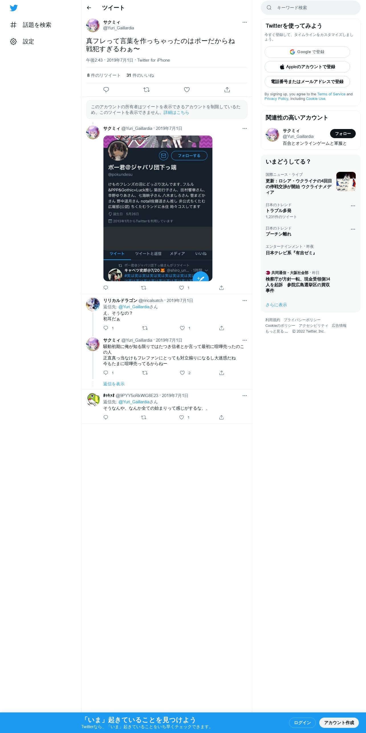 取得元URL: https://twitter.com:443/Yuri_Gaillardia/status/1145704555599896576